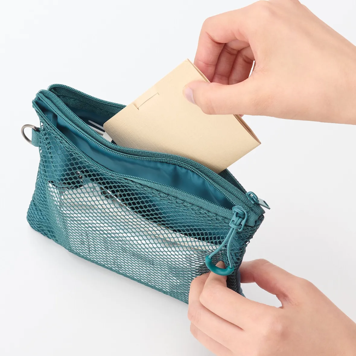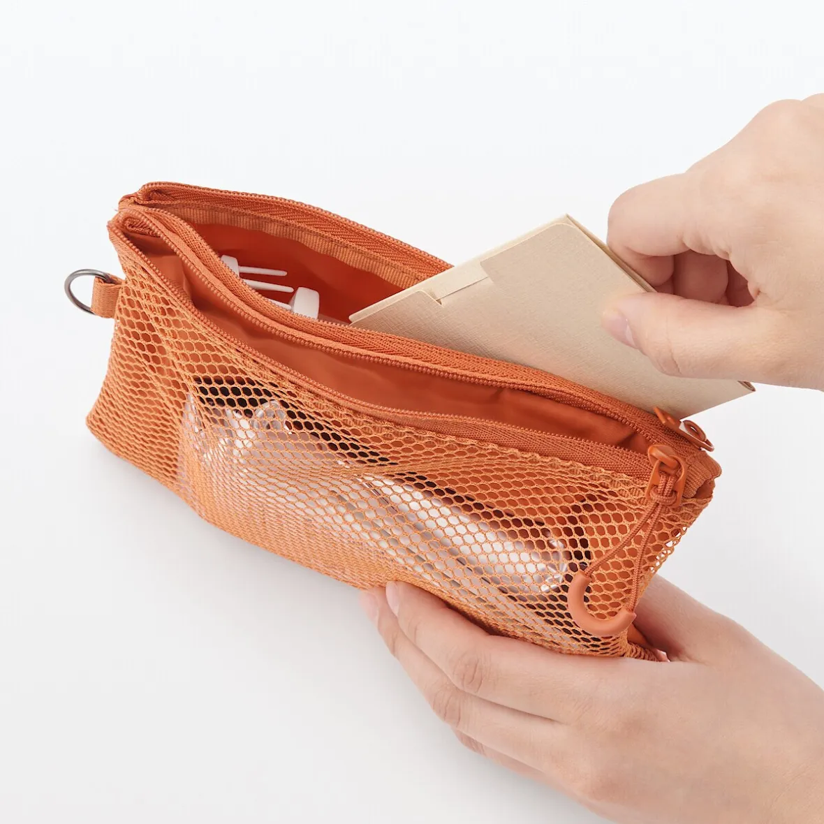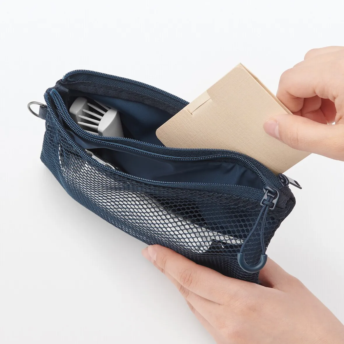 La double fermeture éclair permet d’organiser facilement les petits objets.