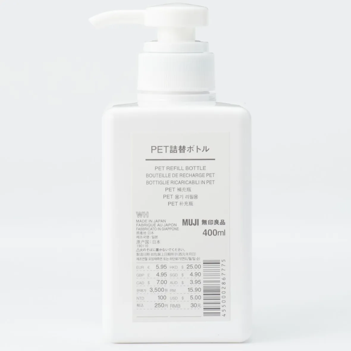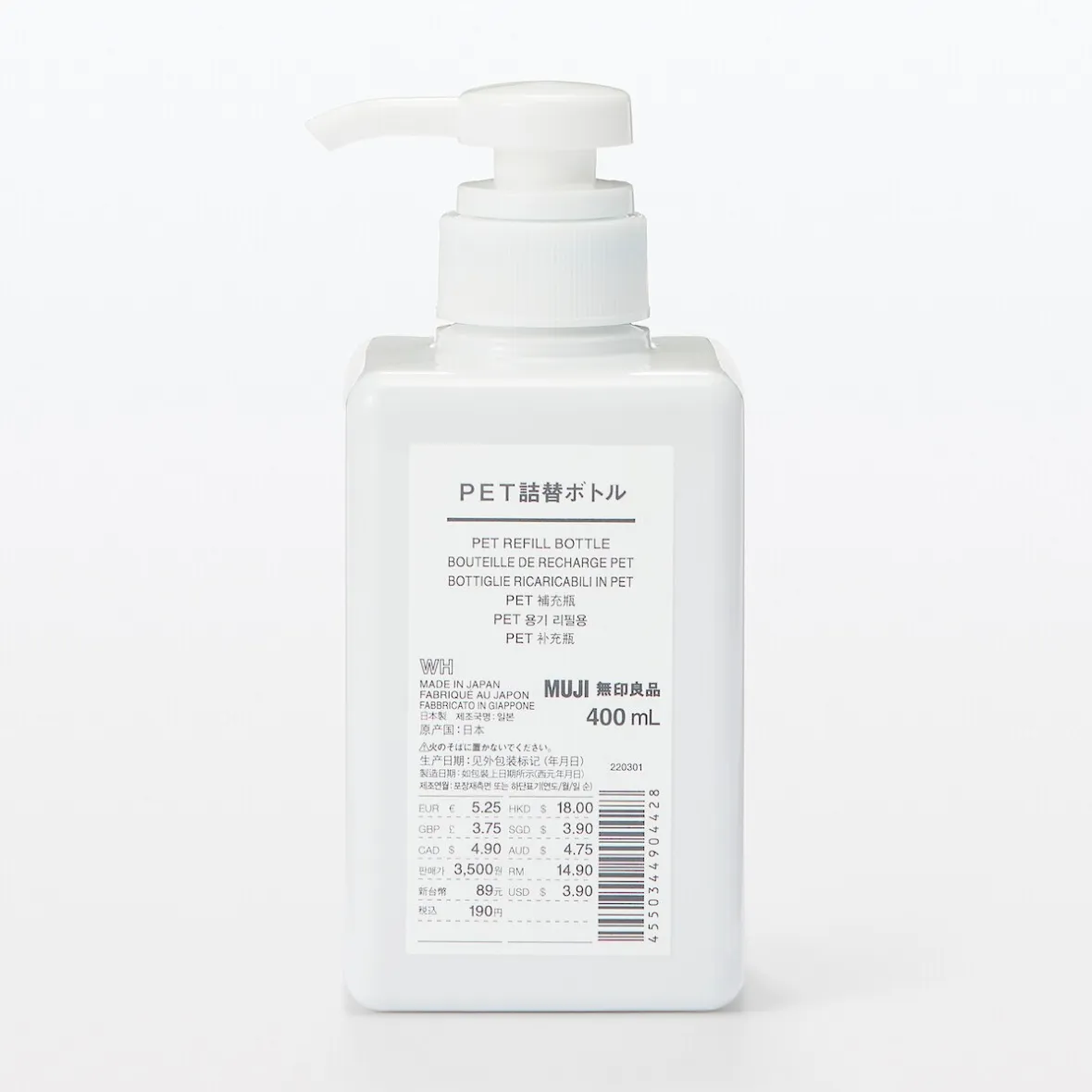 Flacon pratique pour recharger du savon, du shampooing ou de l’après‐shampooing.Blanc, 67,5 x 67,5 x Hauteur 152 mm (175 mm lorsque la buse est relevée)