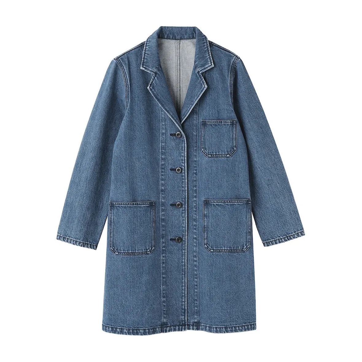 Fabriqué à partir d’un mélange durable de kapok et de coton, ce manteau en denim allie une sensation structurée et une grande fonctionnalité de tous les jours. Conçu pour être polyvalent, il constitue le choix idéal pour une couche supplémentaire au gré des saisons.