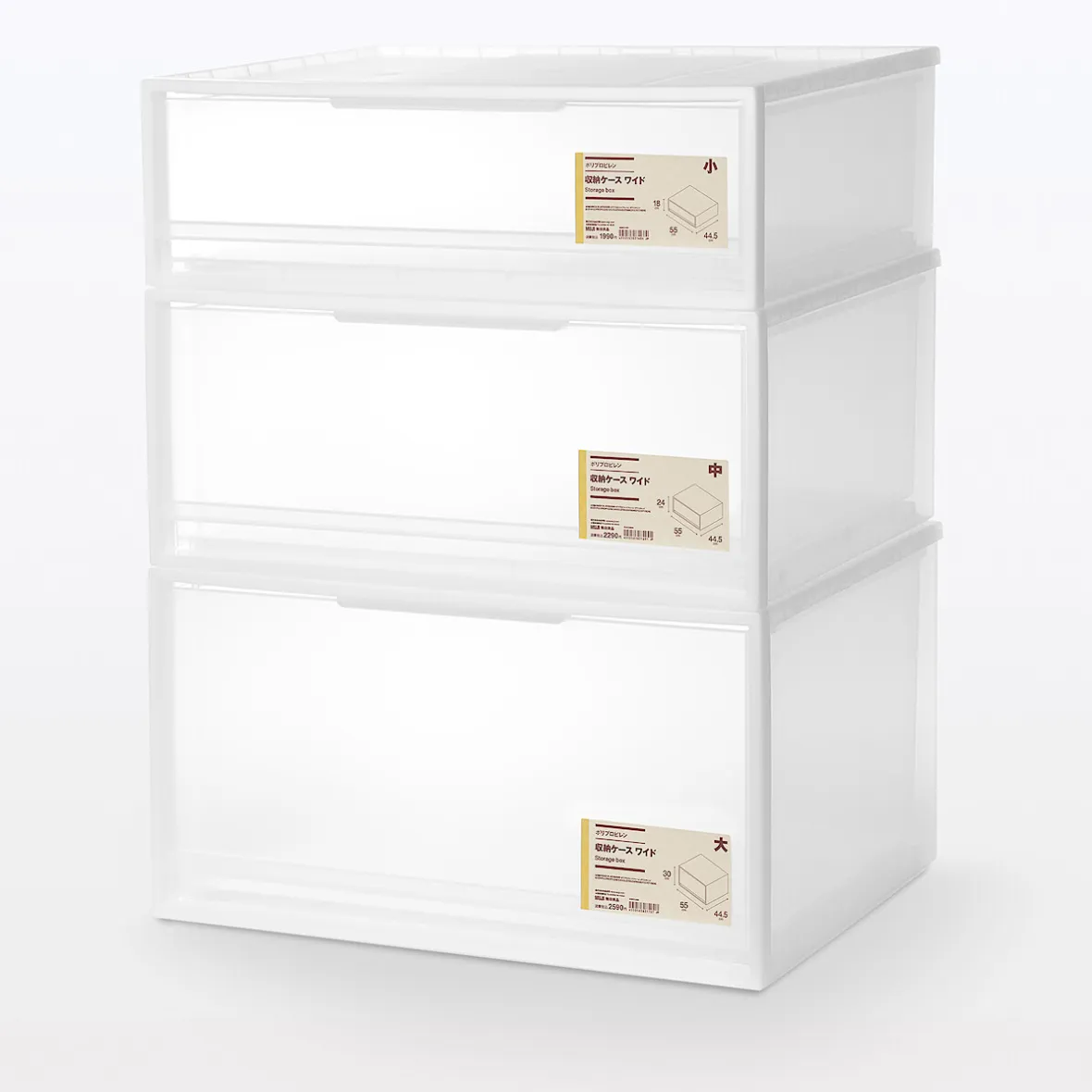 Boîte tiroir en PP (polypropylène). 55 x 44.5 x 30 cm. Empilable: jusqu’à 5 boîtes. Vous pouvez ajouter des pieds (ref 4945247554892) ou des roulettes (ref 4547315523788) dans les 4 trous prévus sous la boîte par un simple clic. Le polypropylène est un matériau translucide à forte densité extrêmement rigide et résistant.