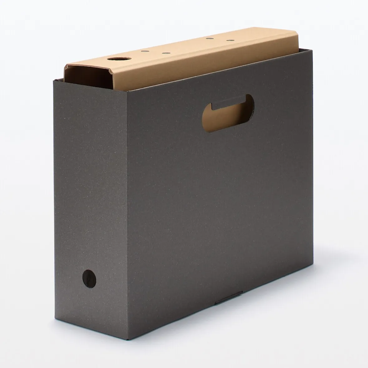 24.6 x 31.6 x 10 cm. Pour dossiers suspendus A4. Kraft 100% recyclé. A monter soi‐même. Vendu par 5.
