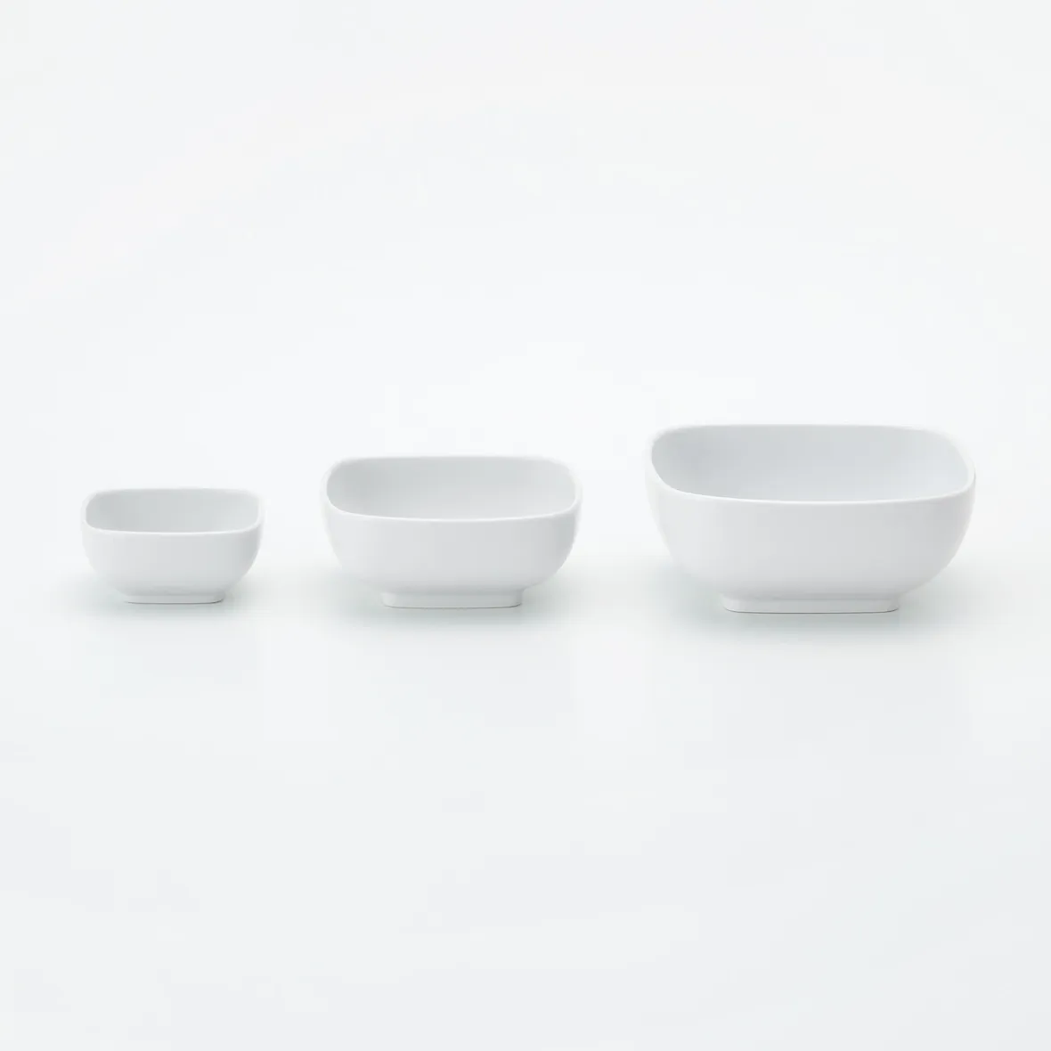 Bol carré. 8 x 8 x 3.7cm. La porcelaine Hakuji, fabriquée à Hasami, dans l’île de Kyûshû, est une porcelaine blanche japonaise faite à l’origine d’une argile de pierre blanche de qualité supérieure. Convient au lave‐vaisselle et au micro‐ondes.