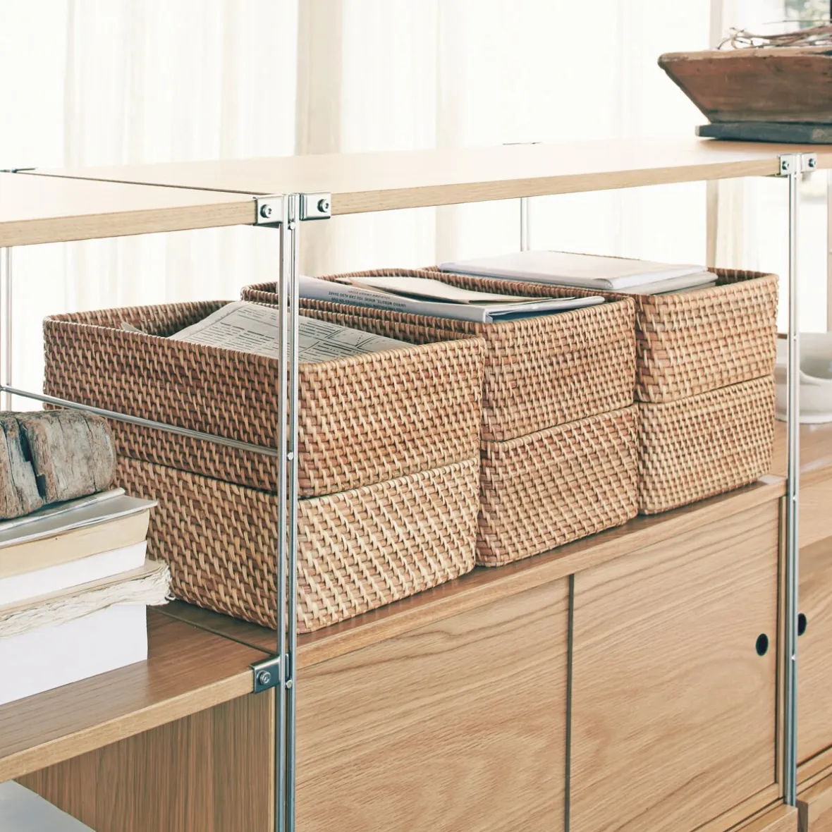 Panier en rotin. Le rotin est une canne qui pousse rapidement et permet de protéger les forêts en offrant un choix alternatif. Le rotin est utilisé depuis des siècles, il est réputé pour sa légèreté et sa solidité.S: L26xP36xH12cm