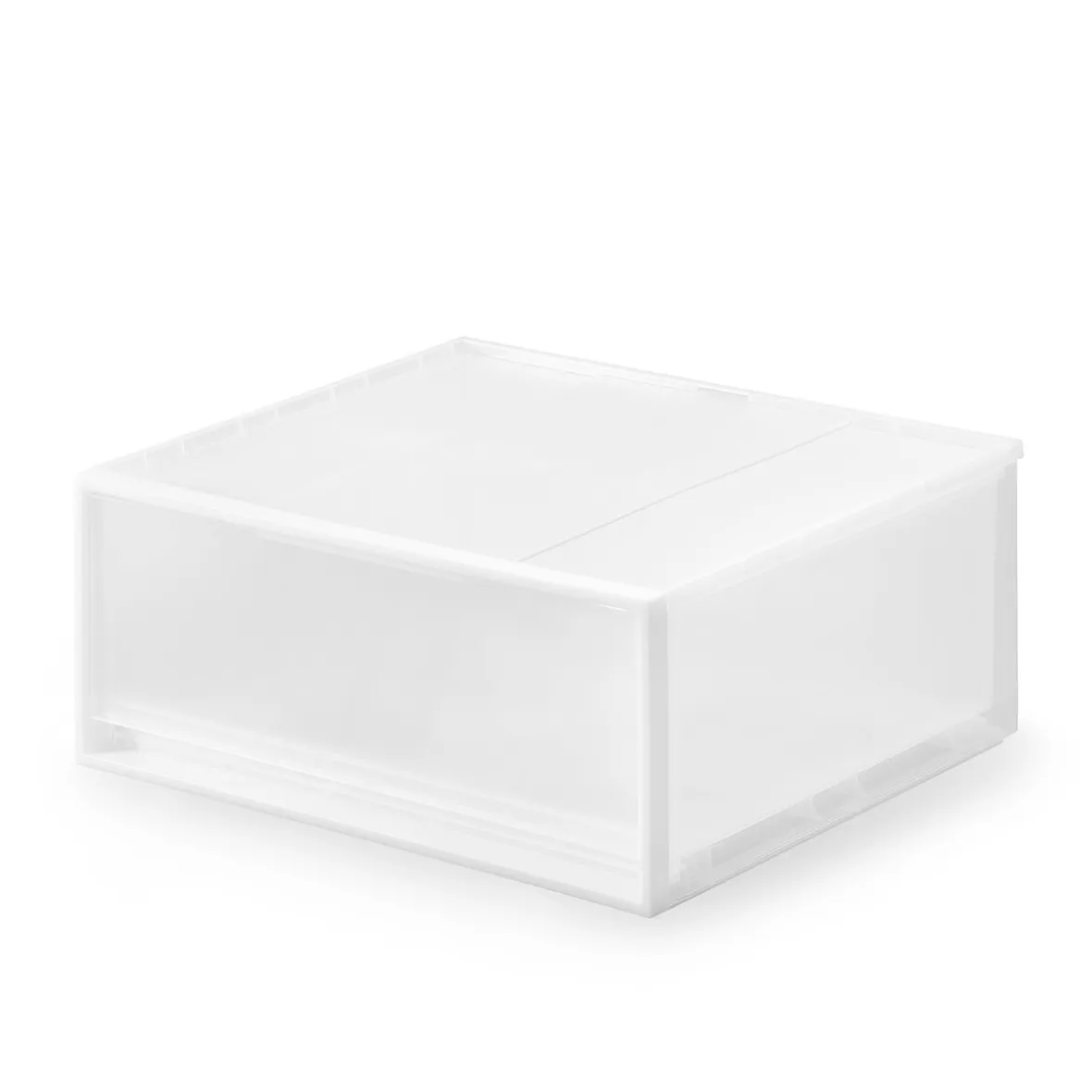 Boîte tiroir en PP (polypropylène). 55 x 44.5 x 24 cm. Empilable: jusqu’à 5 boîtes. Vous pouvez ajouter des pieds (ref 4945247554892) ou des roulettes (ref 4547315523788) dans les 4 trous prévus sous la boîte par un simple clic. Le polypropylène est un matériau translucide à forte densité extrêmement rigide et résistant.