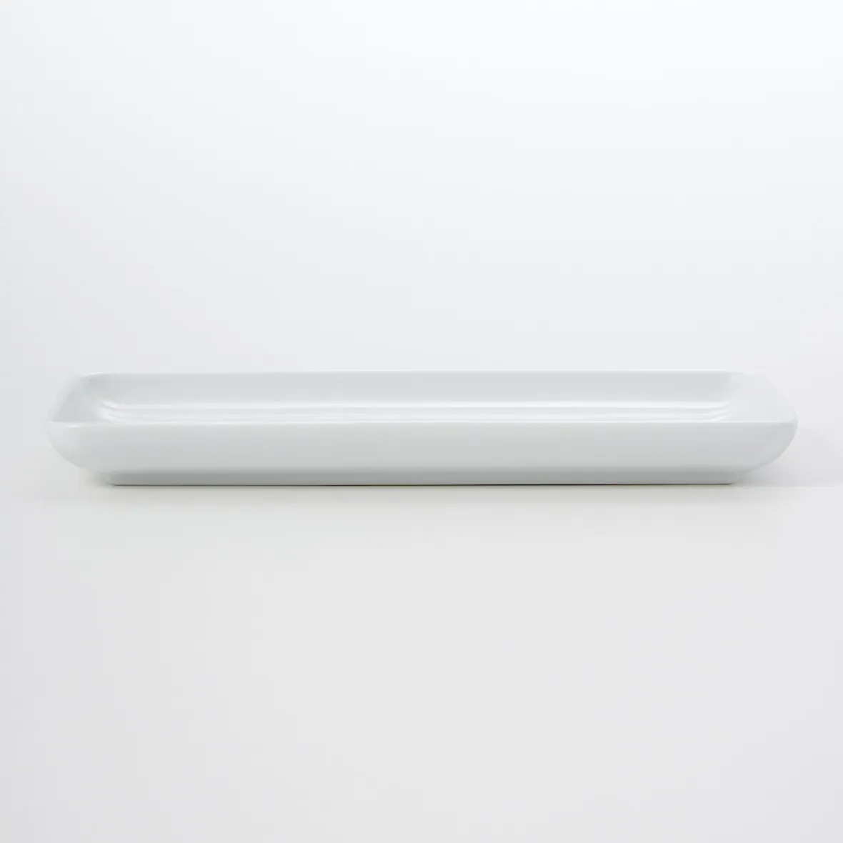 Assiette rectangulaire. Elle peut servir également de petit plat de présentation. Large 22.4 cm X 12.2cm. La porcelaine Hakuji, fabriquée à Hasami, dans l’île de Kyûshû, est une porcelaine blanche japonaise faite à l’origine d’une argile de pierre blanche de qualité supérieure. Les lignes en relief qui apparaissent sur certains éléments soulignent la finesse de cette gamme. Convient au lave‐vaisselle et au micro‐ondes.