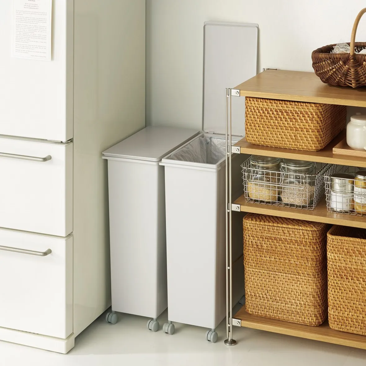 La largeur de cette poubelle est idéale pour les espaces étroits. Le couvercle est vendu séparément.