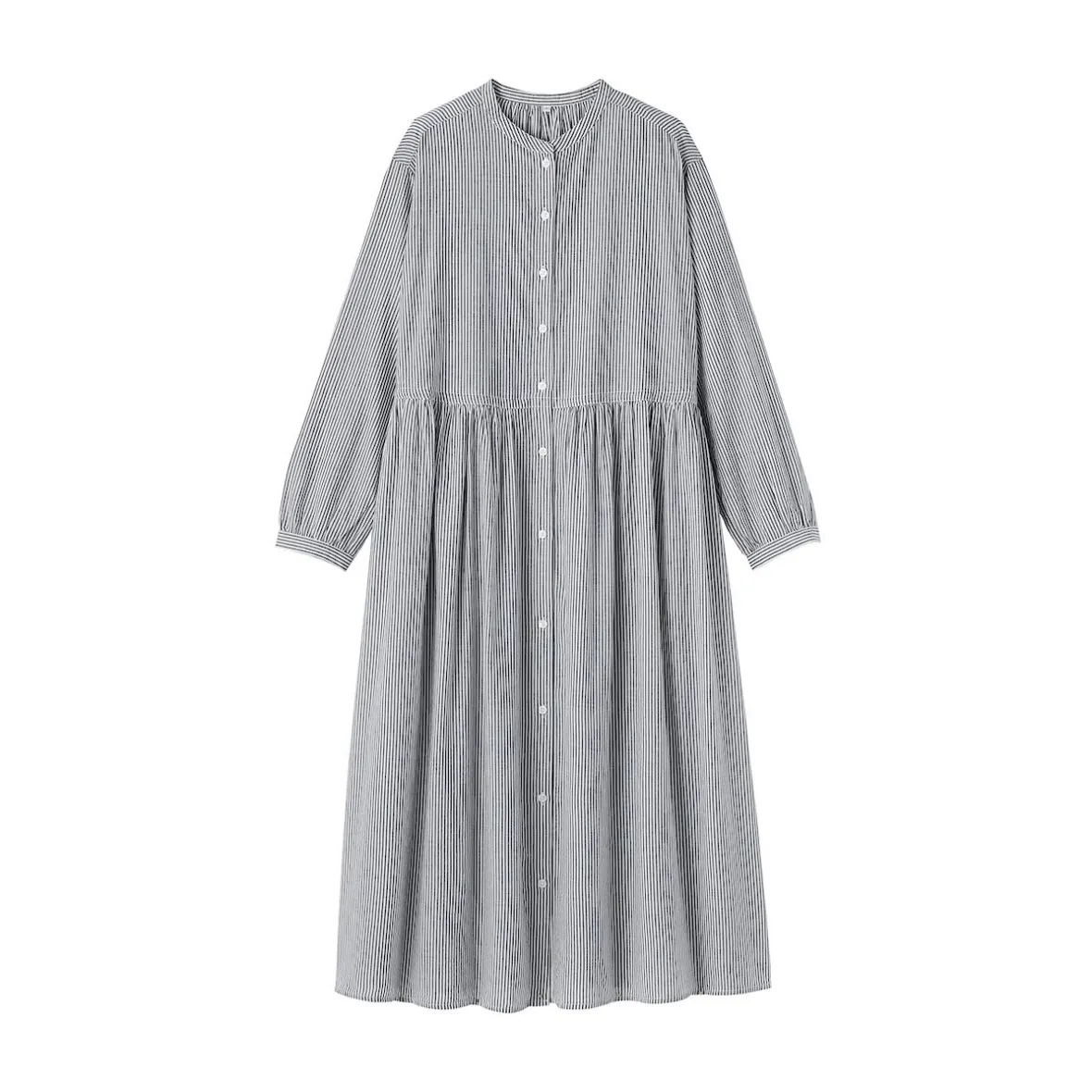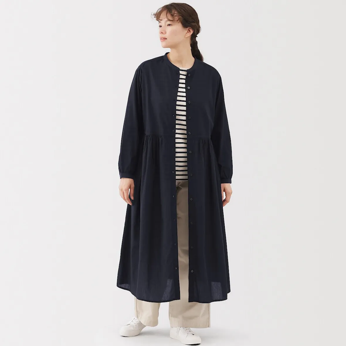Structure souple, poids minimal. Cette robe chemise est fabriquée en voile de coton bio léger pour un drapé confortable et une sensation de douceur au toucher. La patte de boutonnage sur le devant et la taille froncée créent une silhouette mince et souple.