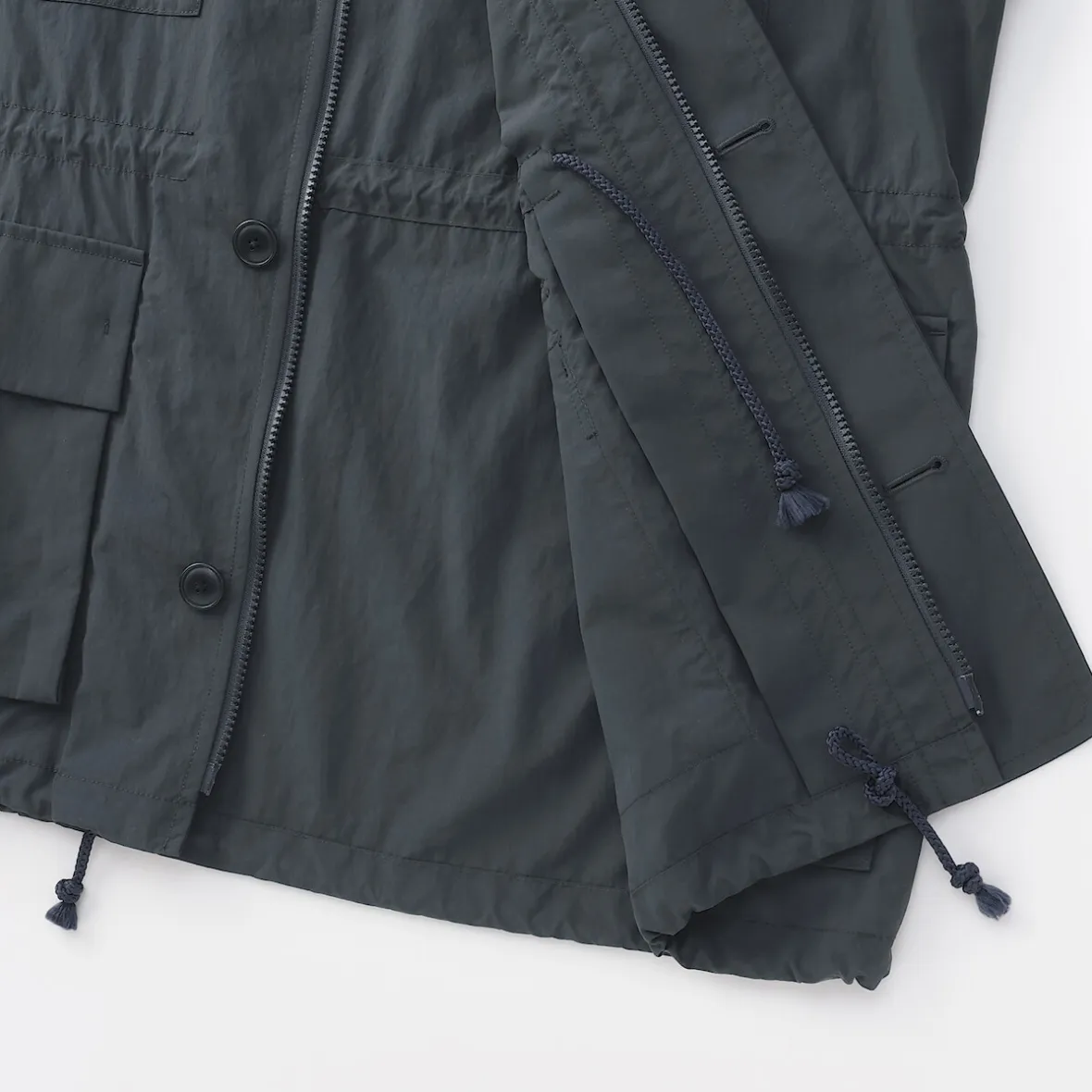 – Double fermeture : zip et boutons pour une fermeture sécurisée.