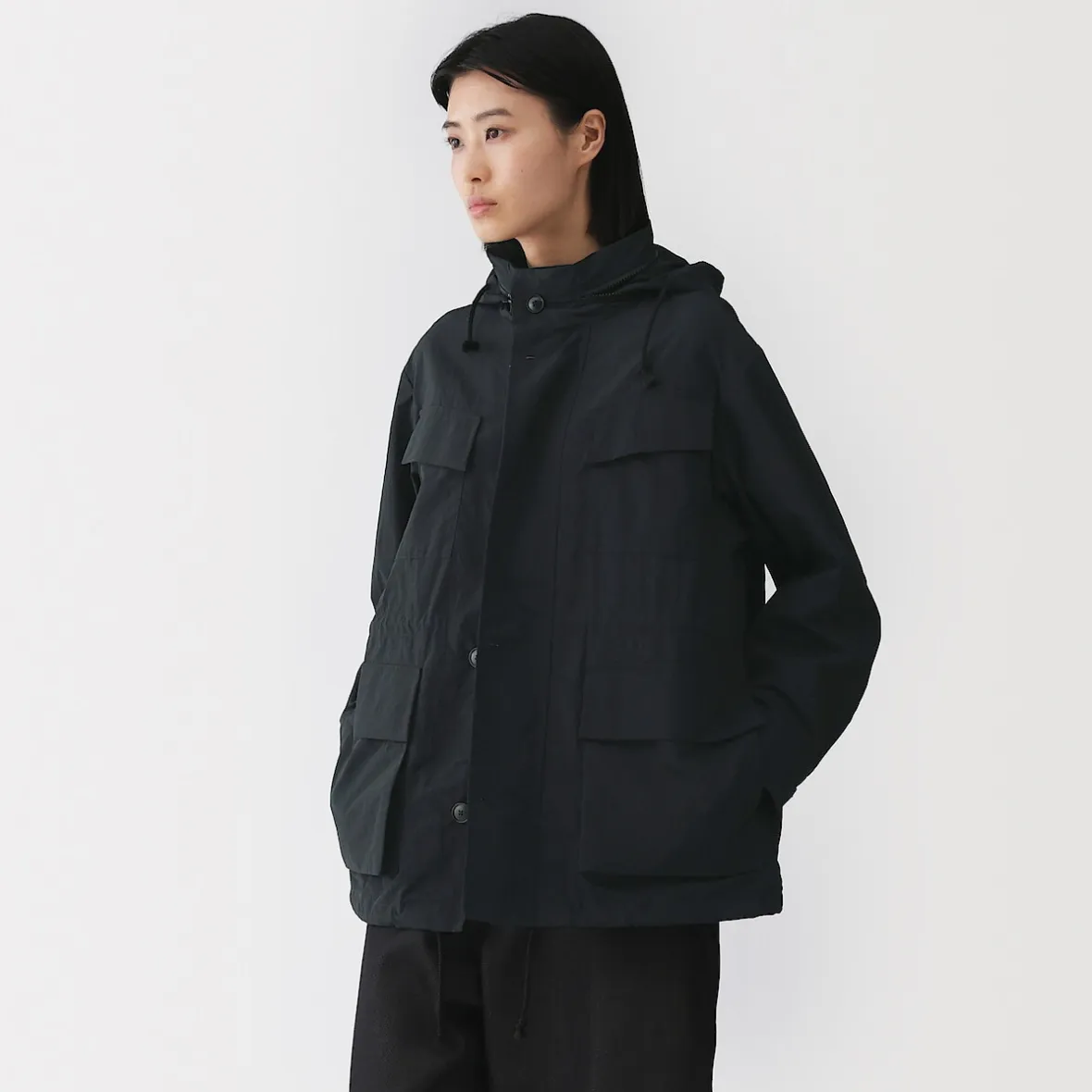 – Capuche repliable : les cordons de serrage se rangent facilement lorsqu’ils ne sont pas utilisés.