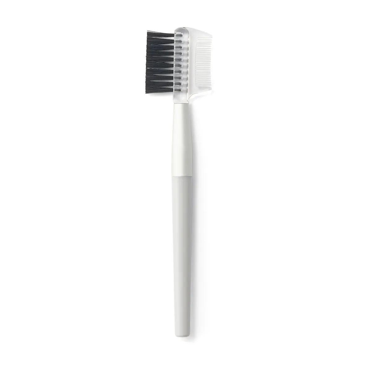 Brosse à sourcils avec peigne à cils. Un accessoire pratique pour séparer les cils et dompter les sourcils. Manche en styrène gris et aluminium.