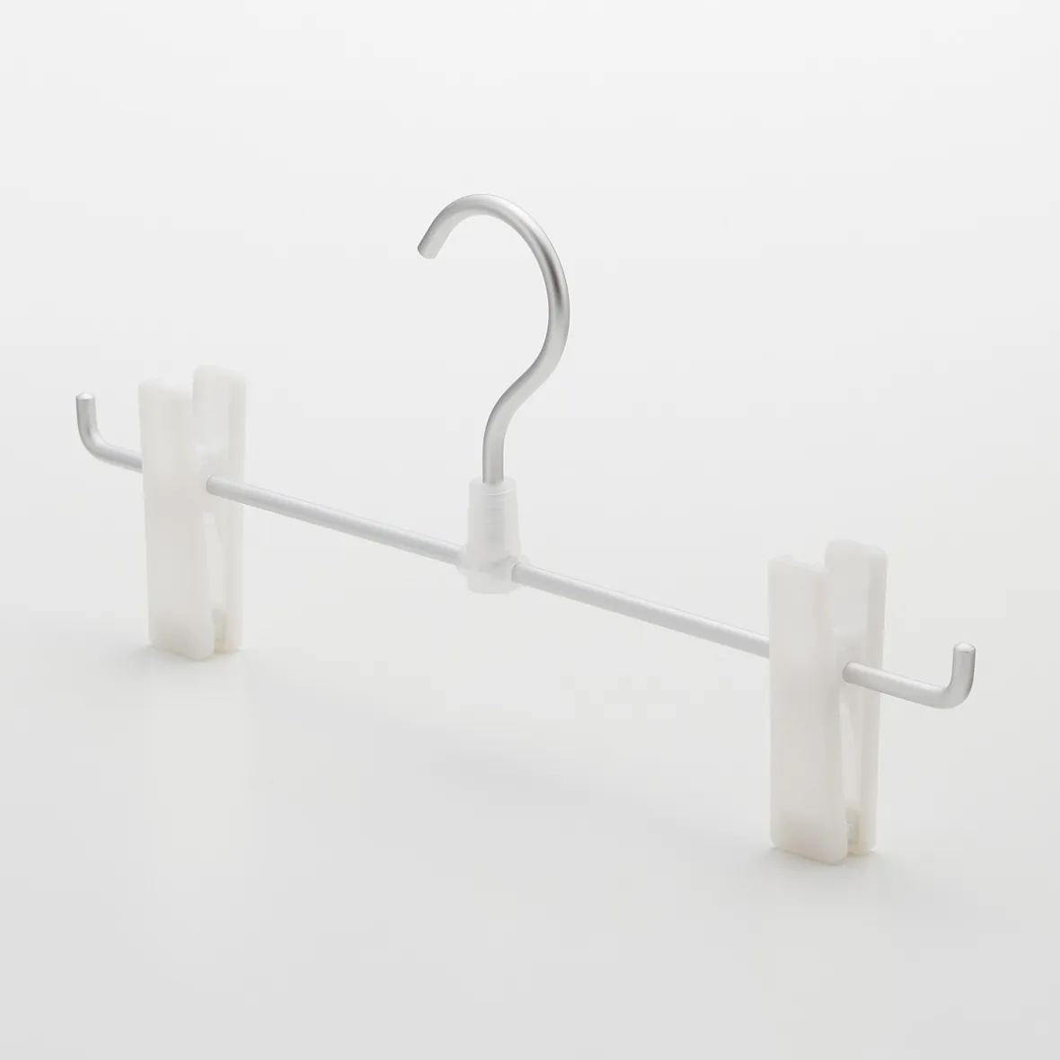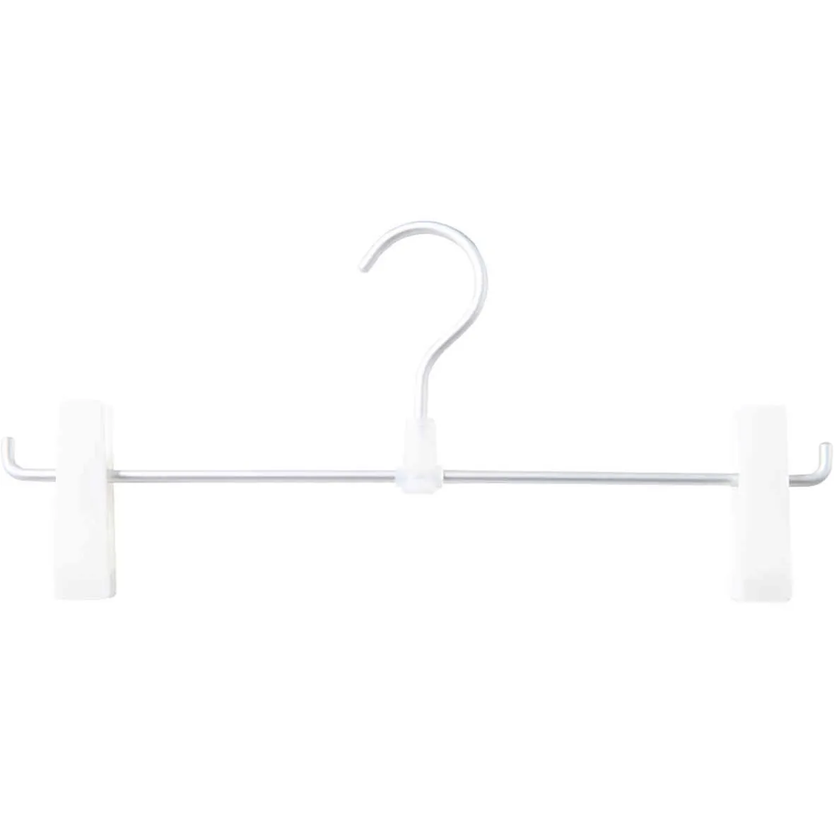 Cintre à pinces en aluminium et polypropylène blanc. Pour les jupes et pantalons.