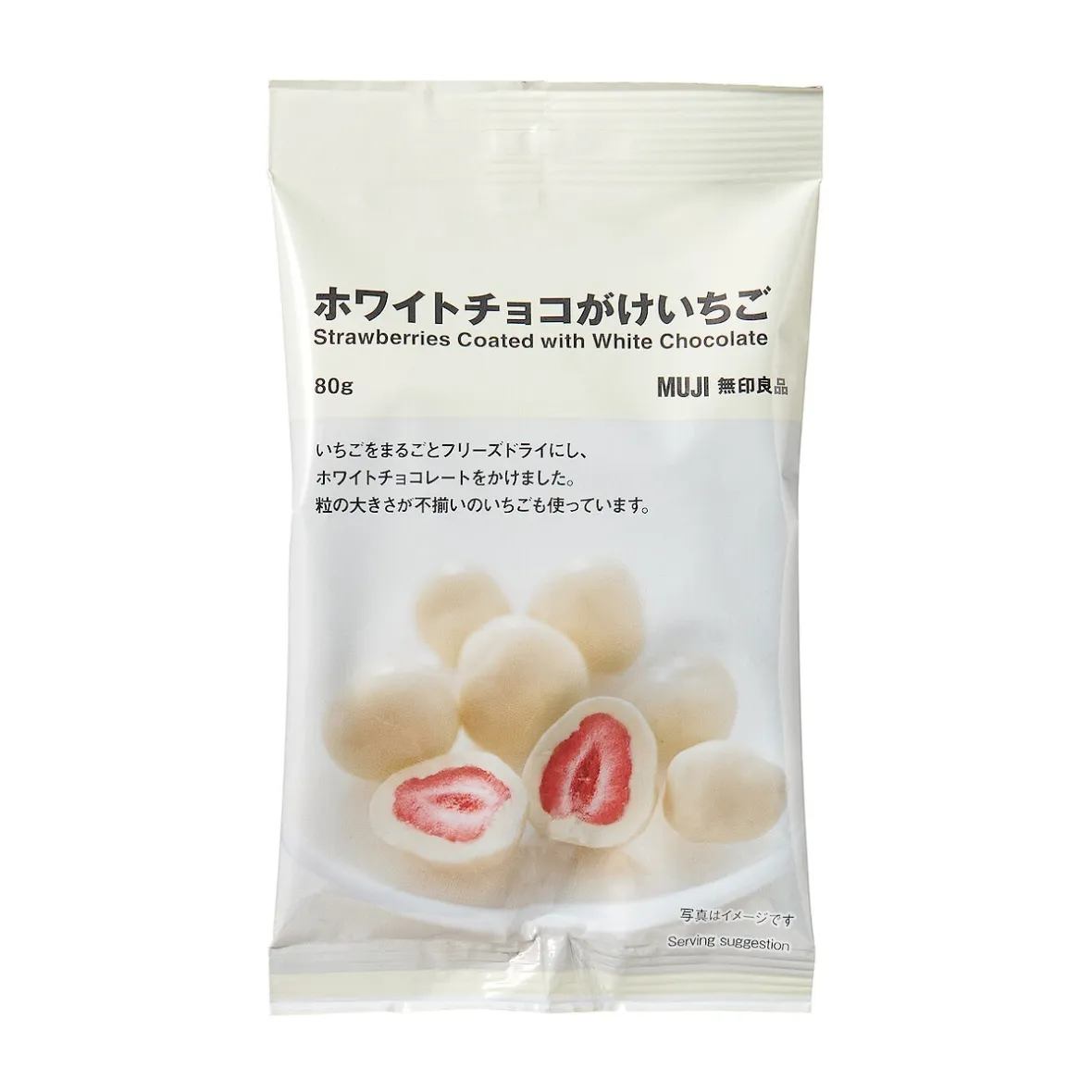Fraises déshydratées enrobées de chocolat blanc saveur yaourt.