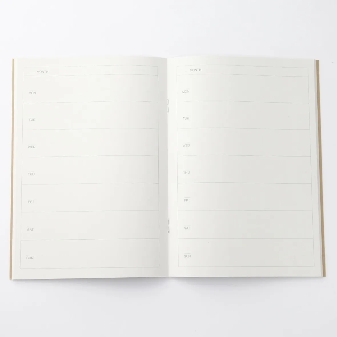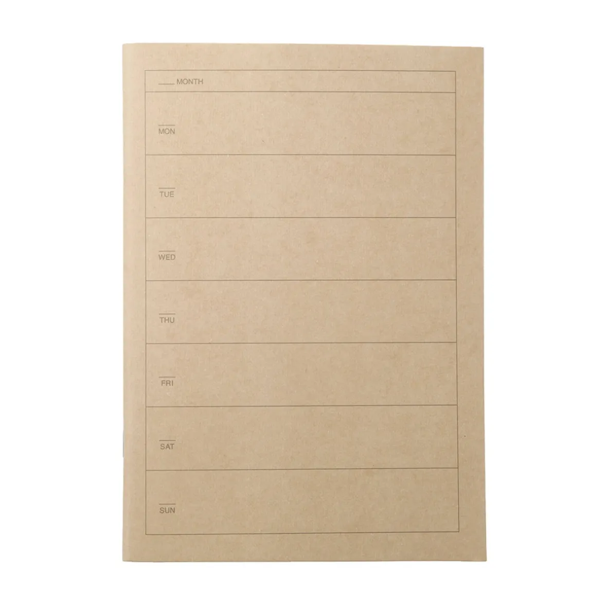 Les champs de cet agenda hebdomadaire sont vides, ce qui vous permet d’inscrire vos propres dates et de commencer à utiliser le carnet au moment qui vous convient.