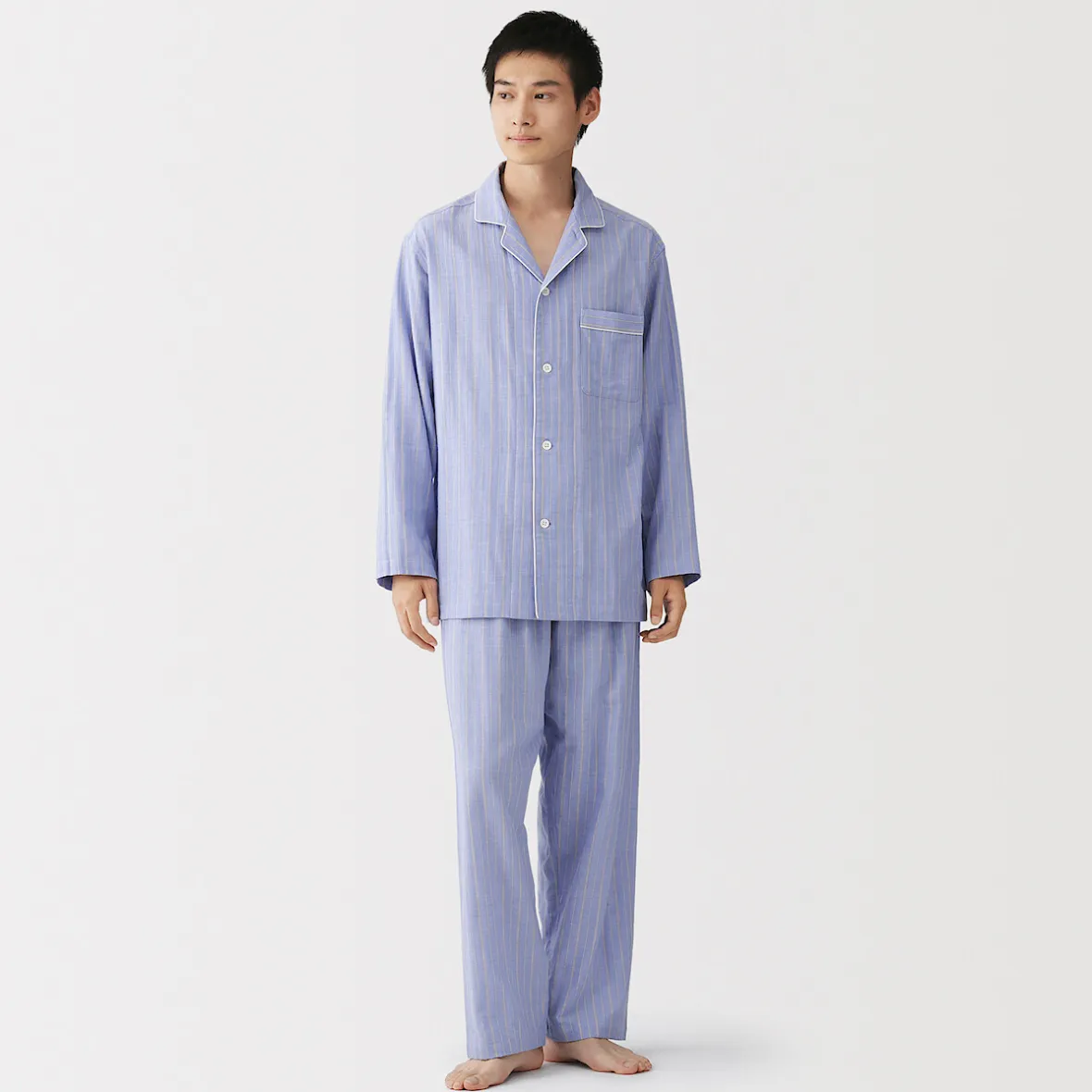 Doux au toucher, conçu pour le sommeil. Fabriqué à partir de deux couches respirantes de gaze de coton 100%, il présente une finition aérée pour plus de douceur. Le col se porte ouvert ou fermé. Pas de coutures latérales ni d’étiquette au niveau de la nuque, pour un sommeil de tout repos.