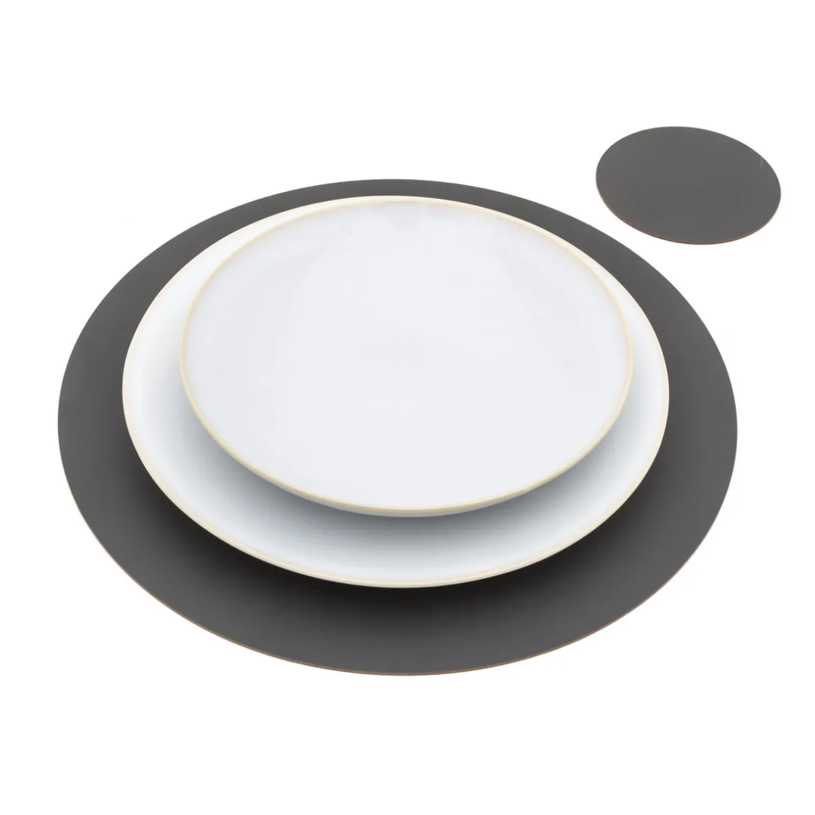 Disponibles en lot de quatre, ces dessous de verre sont un complément raffiné à toute table de salle à manger ou de salon. Ils sont fabriqués à partir de cuir recyclé pour apporter une touche éco responsable à votre intérieur. Des sets de table assortis sont disponibles.