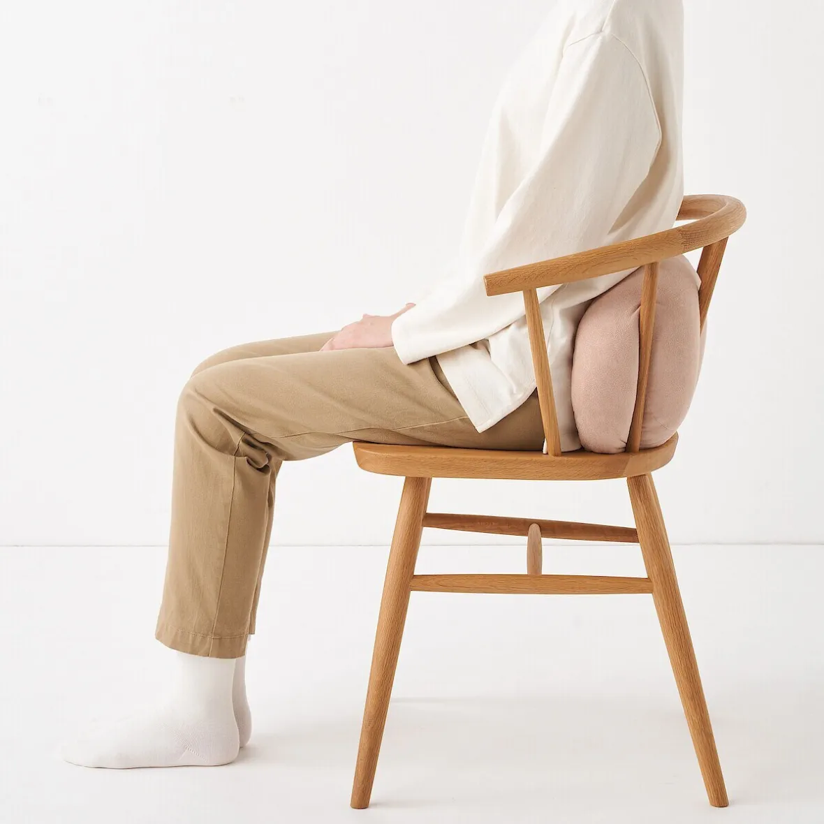 ‐ Placé verticalement sur une chaise, le coussin s’étend vers le haut et soutient la taille et le dos