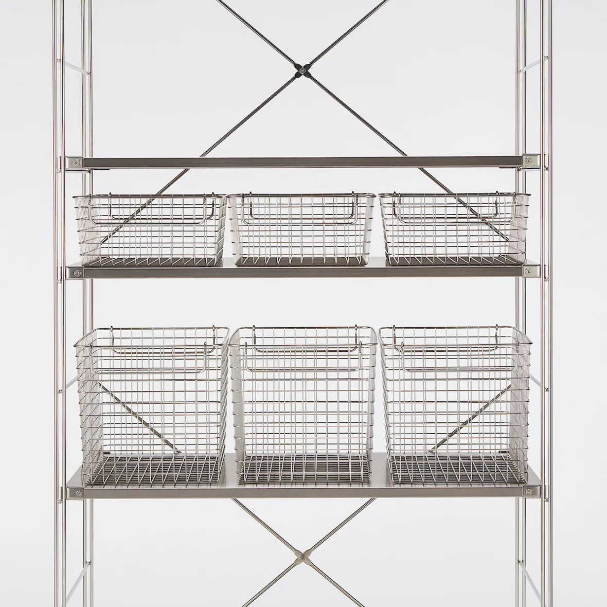 Des poignées pour le transport qui peuvent être retournées à l’intérieur afin d’empiler les paniers.