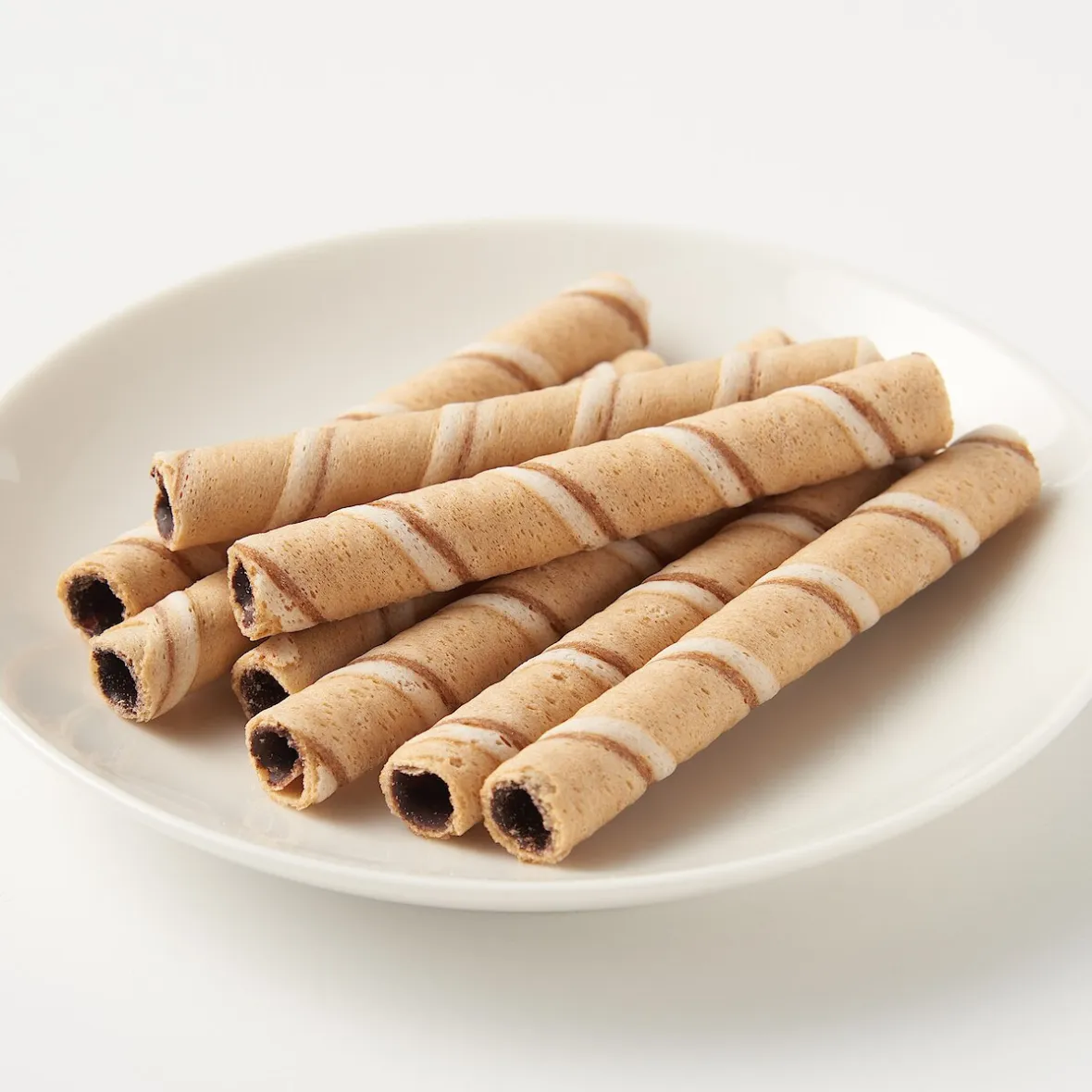 Rouleaux de gaufrette avec une garniture saveur chocolat. Contient de l’huile de palme certifiée durable.