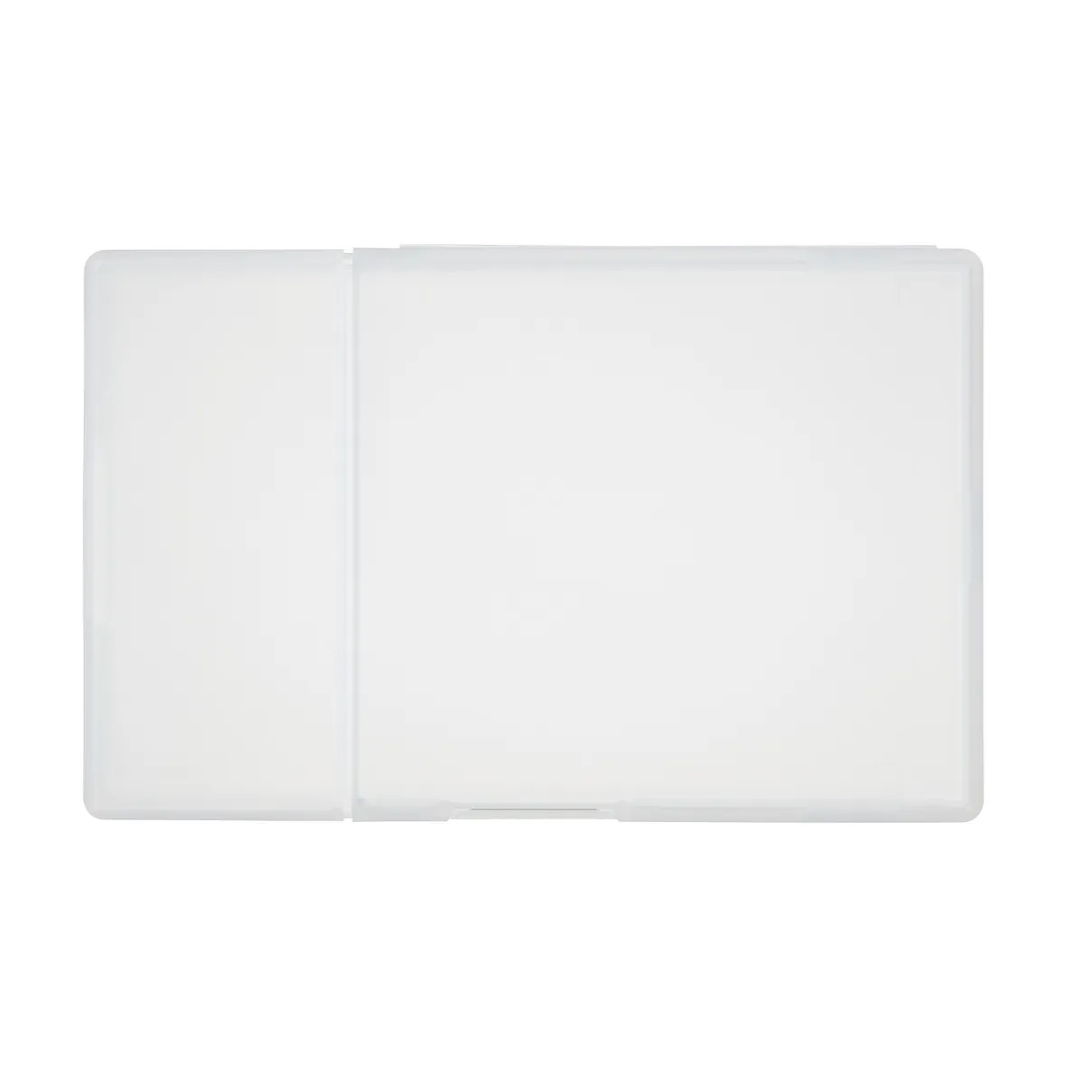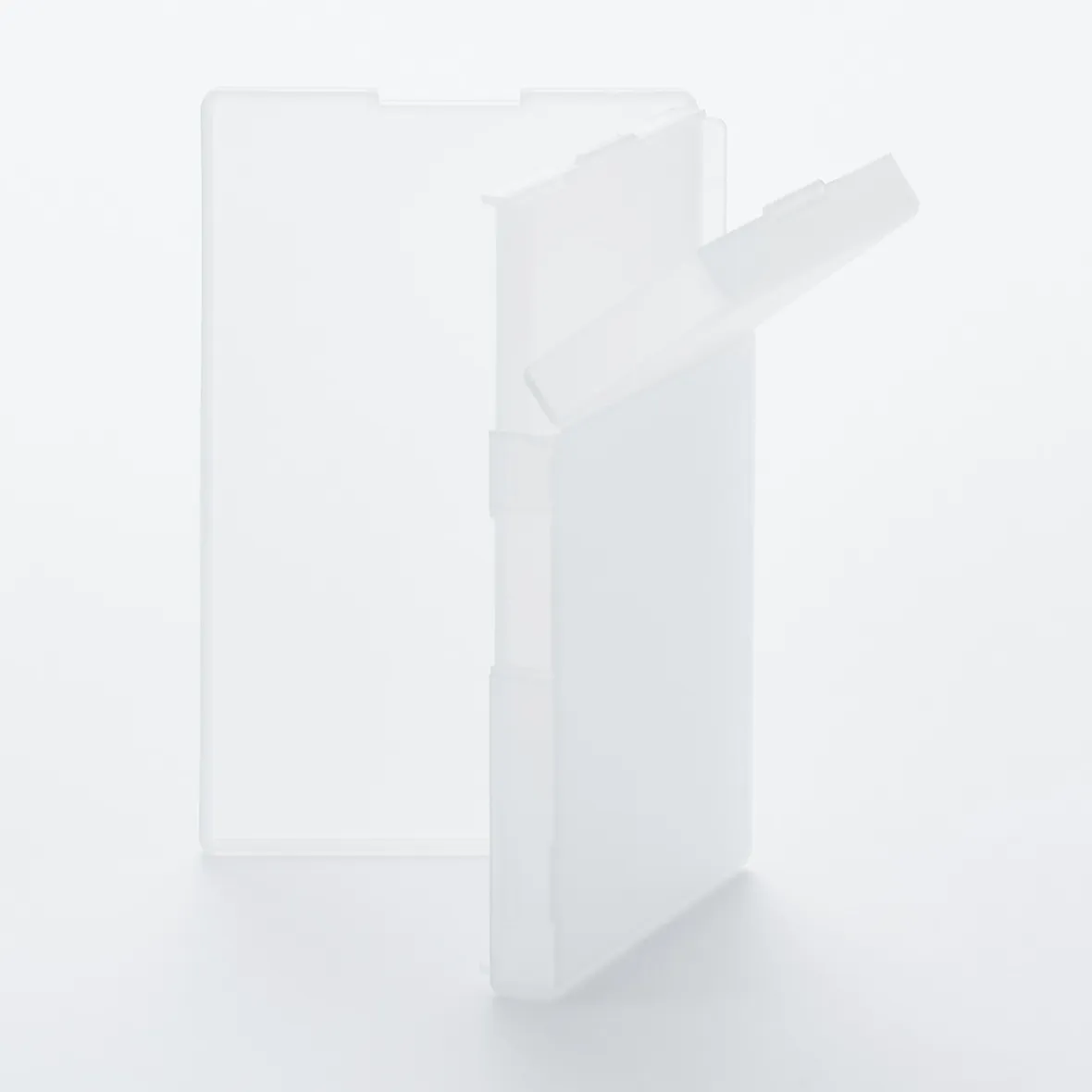 Un boîtier de carte en polypropylène qui peut être ouvert de deux façons et tenir jusqu’à 30 cartes de visite.