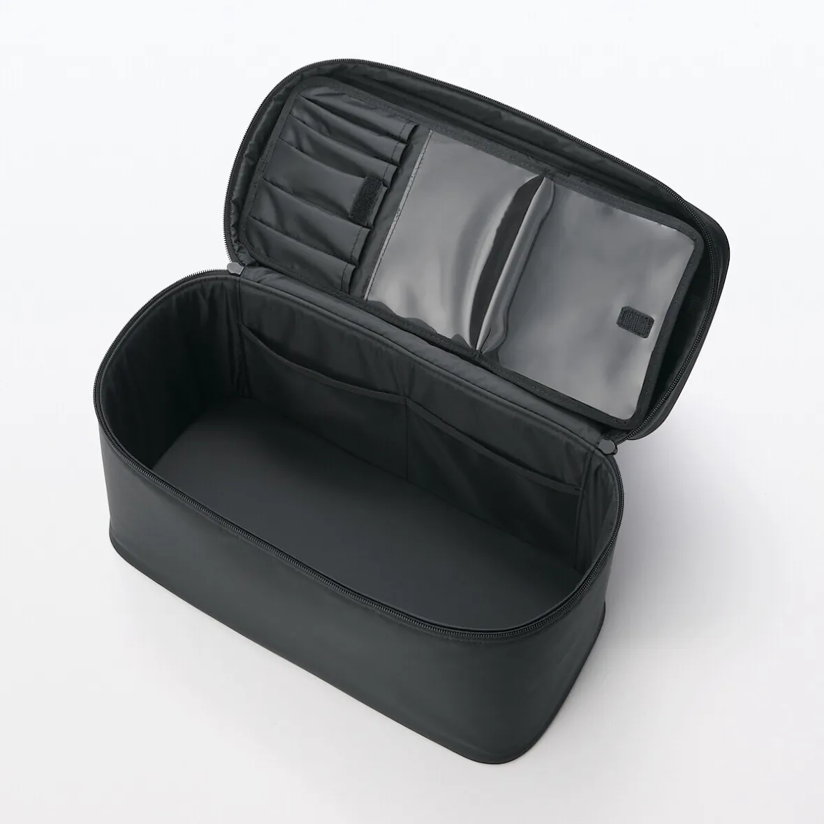 Pour organiser et stocker des produits de maquillage et cosmétiques. Utilisable comme séparation en levant le plateau du fond.