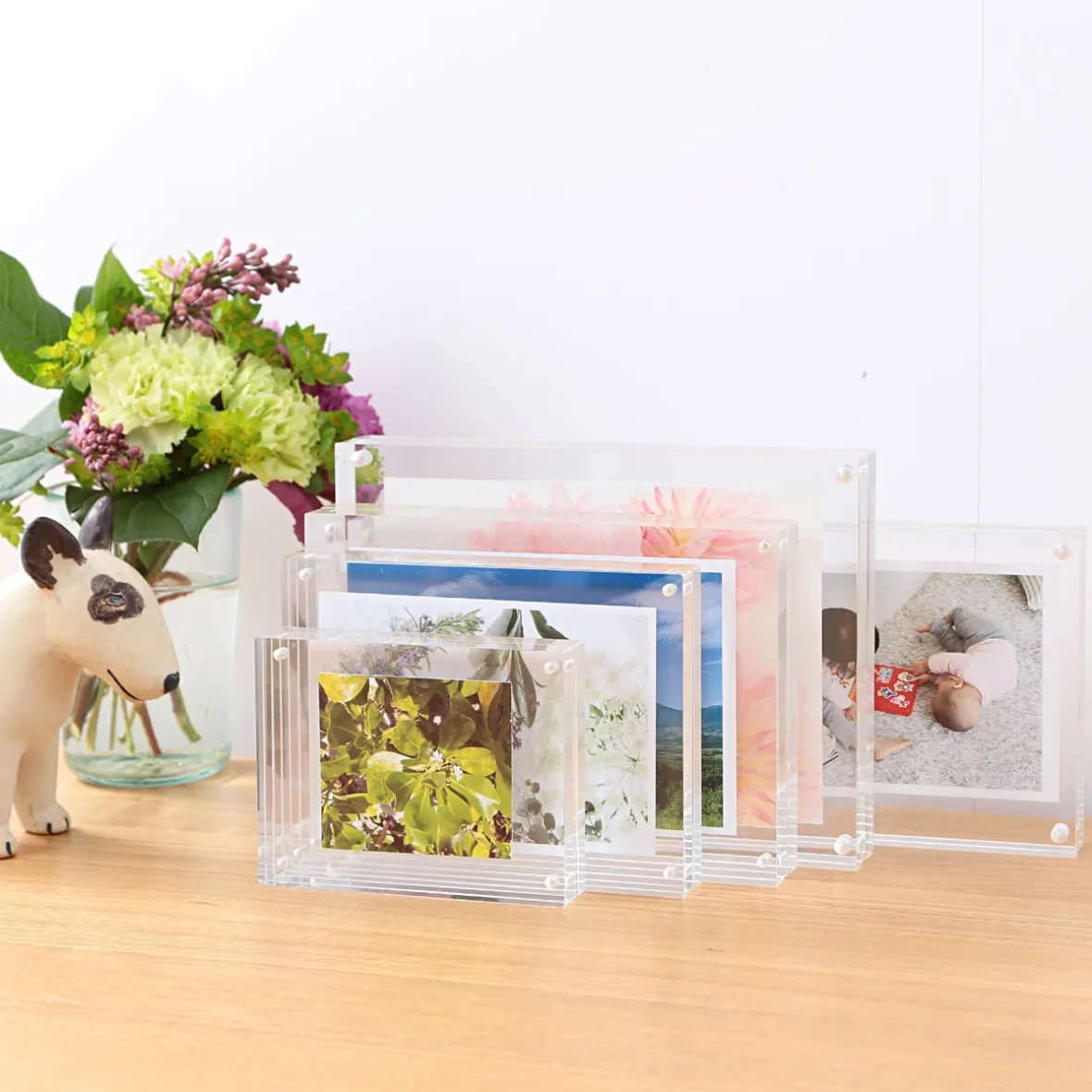 Cadres acryliques aimantes. Les cadres MUJI sont conçus pour se faire oublier et mettre en valeur votre photo. Utilisable en portrait ou en paysage.Dimensions :Small ‐ 11.3 x 3 x 8.8 cm (dimensions interieures 9 x 7cm)Medium ‐ 15 x 3 x 11.3 cm (dimensions intérieures 13 x9.5cm)Large ‐ 17.8 x 3 x 12.8 cm (dimensions intérieures 16 x 10.5cm)Extra Large ‐ 20 x 3 x 15 cm (dimensions interieures 18 x 13cm)