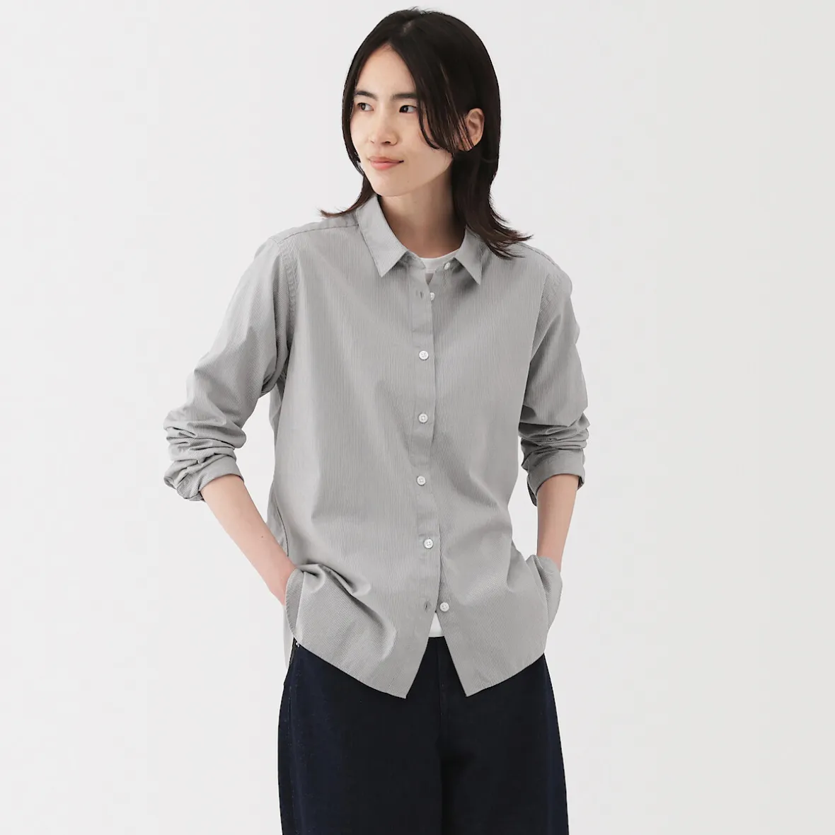 La douceur redéfinie. Tissée en fil de coton fin et légèrement brossé pour plus de confort, cette chemise allie une coupe classique avec une grande aisance de mouvement. La silhouette légèrement carrée crée une coupe nette et détendue, tandis que les plis sur le côté offrent une grande liberté de mouvement au niveau des épaules.