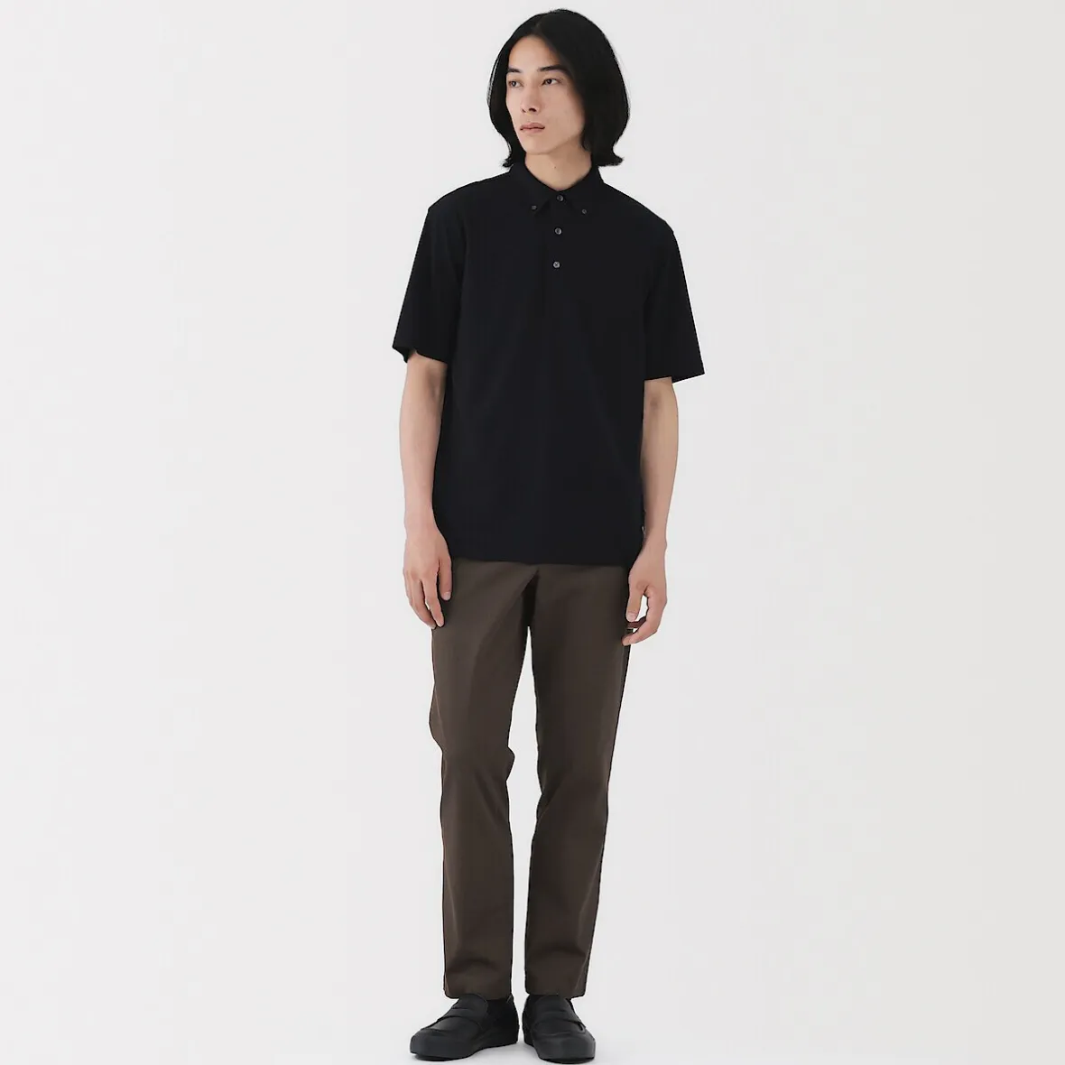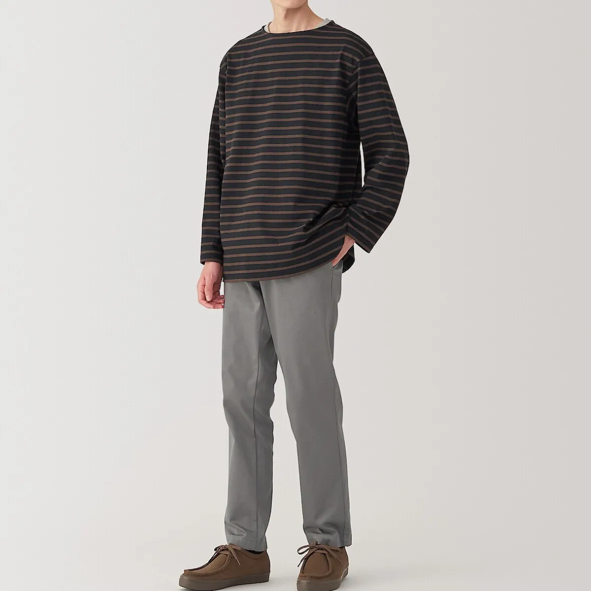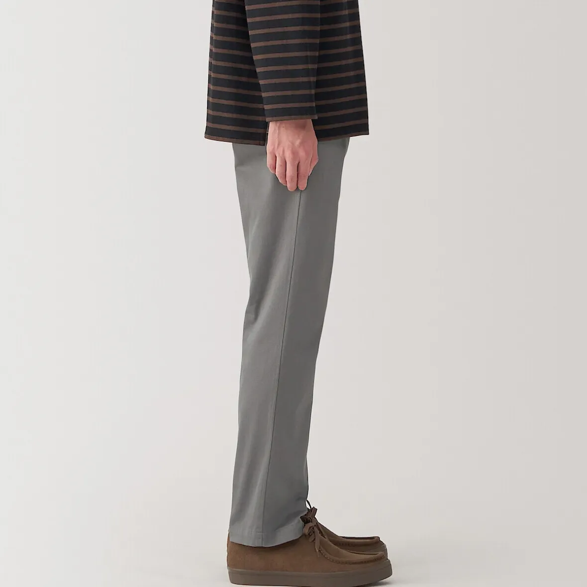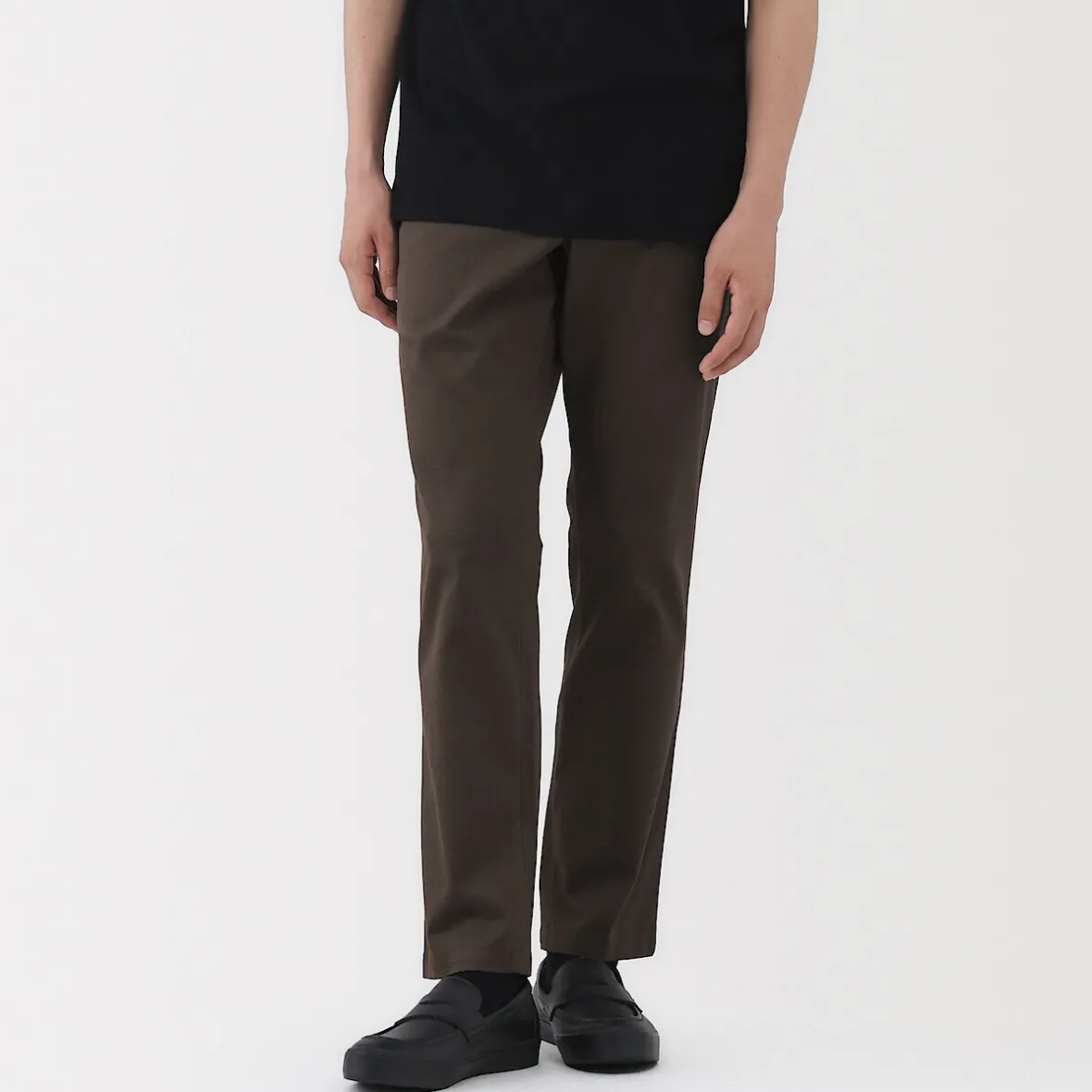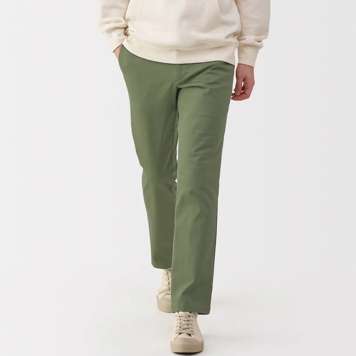 Les chinos sont un best‐seller de MUJI. Ce modèle classique, tant par sa coupe que par sa couleur, est fabriqué dans une matière extensible confortable pour une plus grande liberté de mouvement.