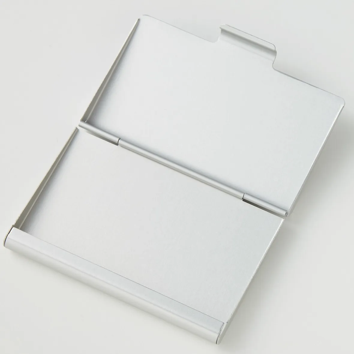 9.3 x 6 x 1 cm. 6 x 9.3 x 1.5 cm. Porte‐cartes de visite en aluminium. 30 cartes.