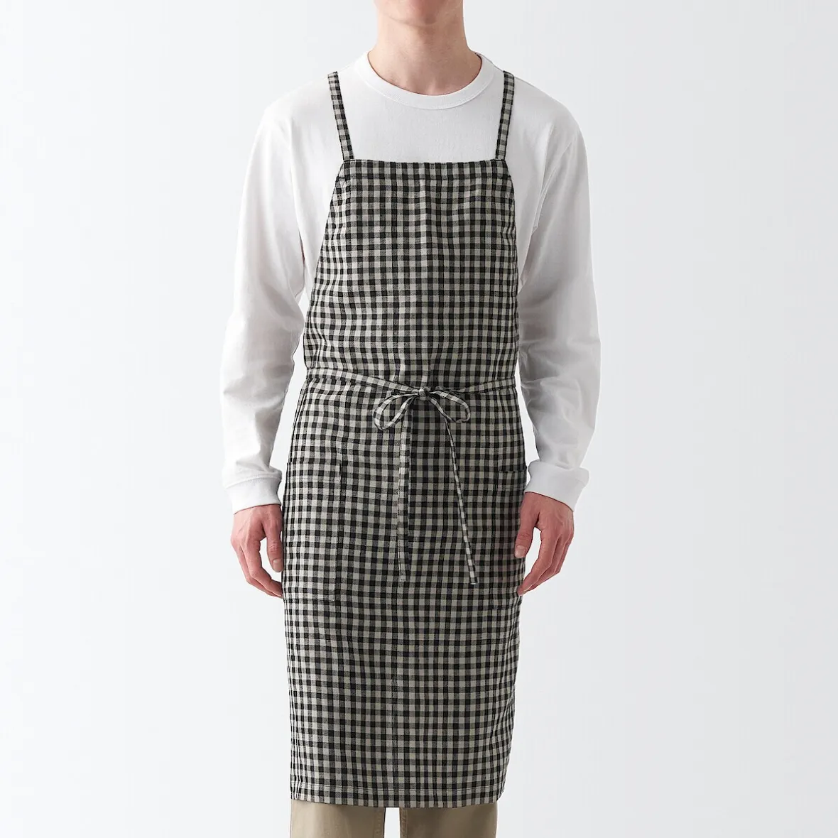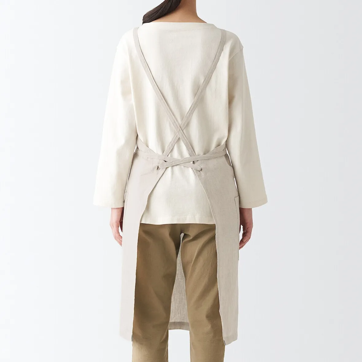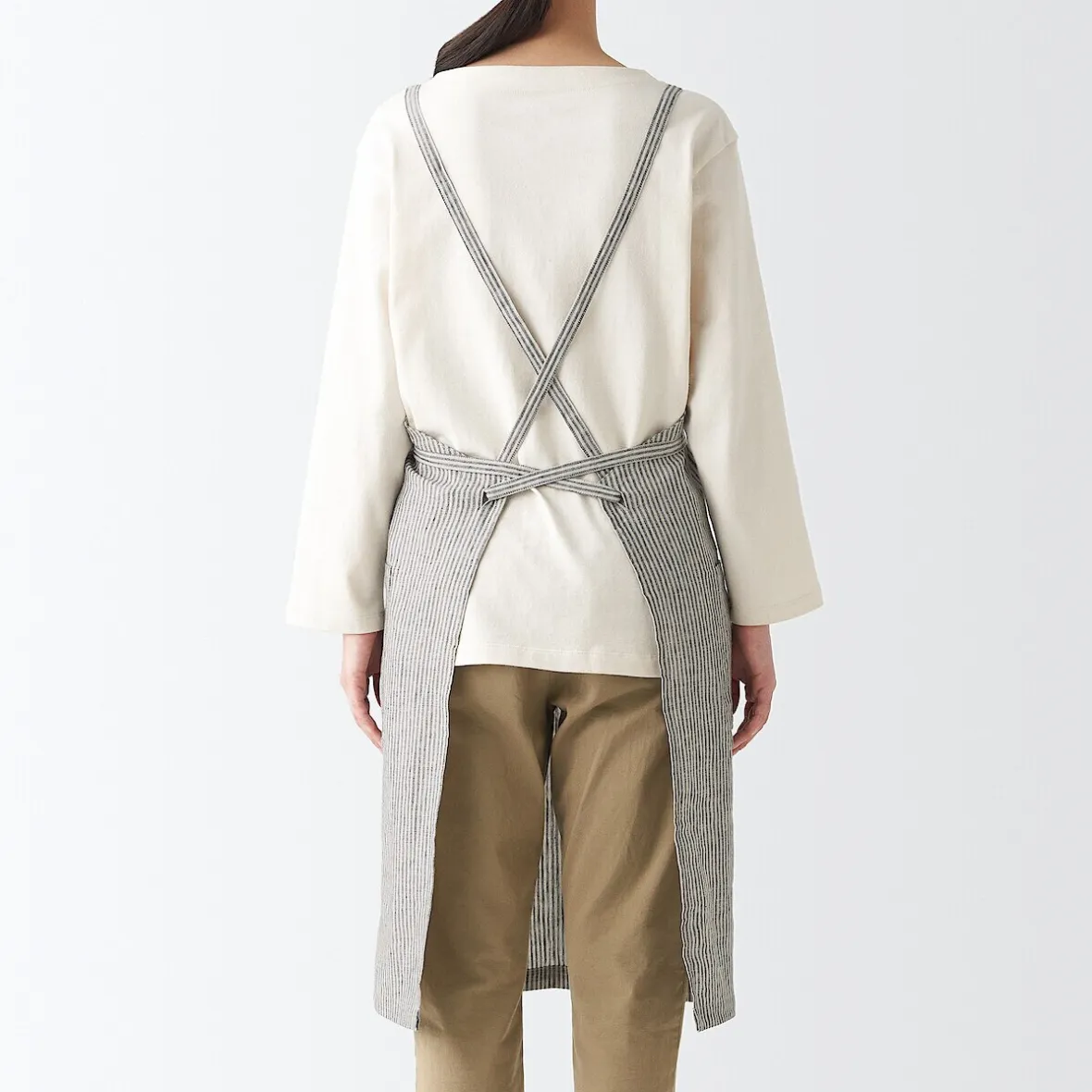 Tablier de type tasuki, couramment utilisé dans les cafés pour prévenir la fatigue du cou causée par les sangles. La longueur et la largeur sont réglables grâce aux attaches.