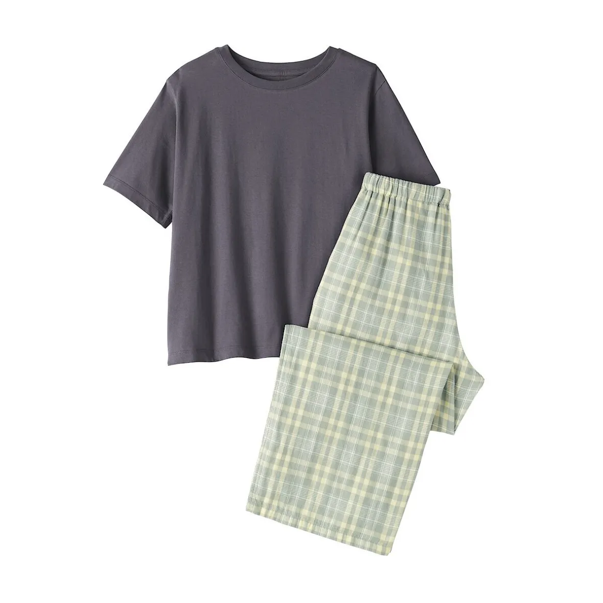 Cet ensemble associe un t‐shirt en coton doux et uni à un pantalon en double gaze pour un confort tout au long de la journée. Fabriqué avec du coton biologique pour une sensation naturelle et respirante.