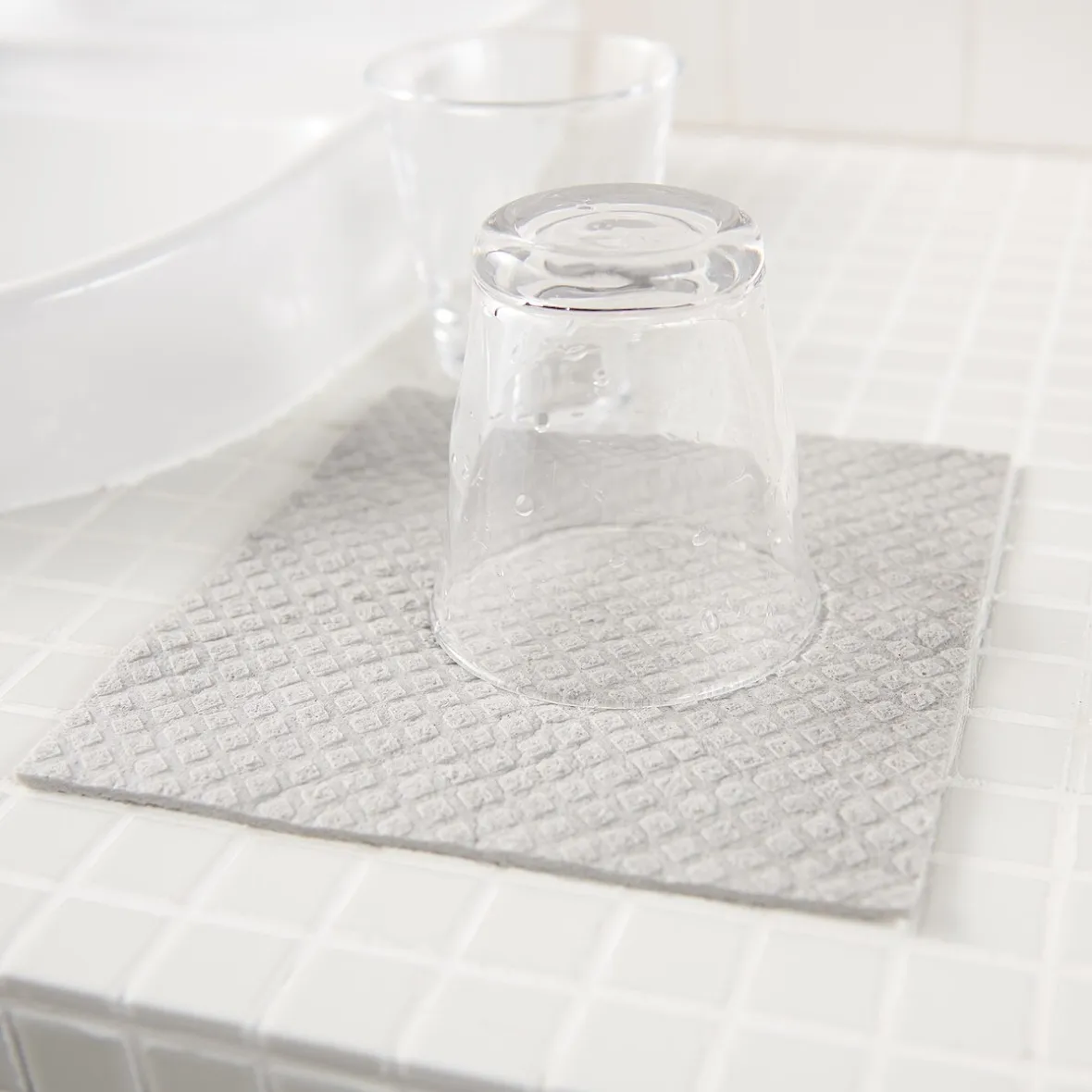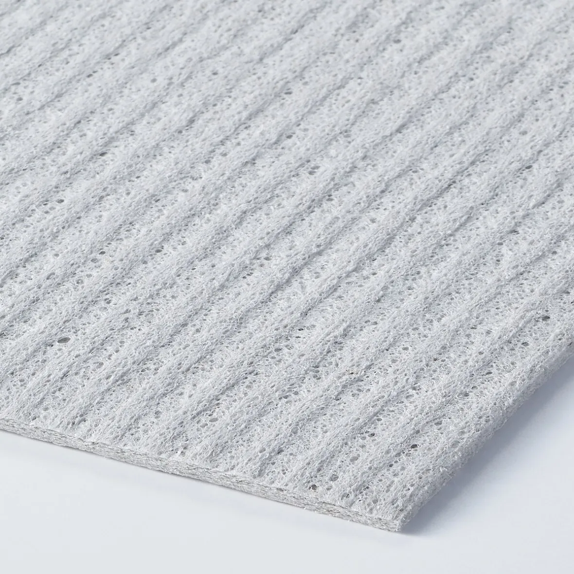 En cellulose végétale. Absorbante et à séchage rapide avec une large gamme d’utilisations comme torchon de cuisine ou tapis absorbant, etc.