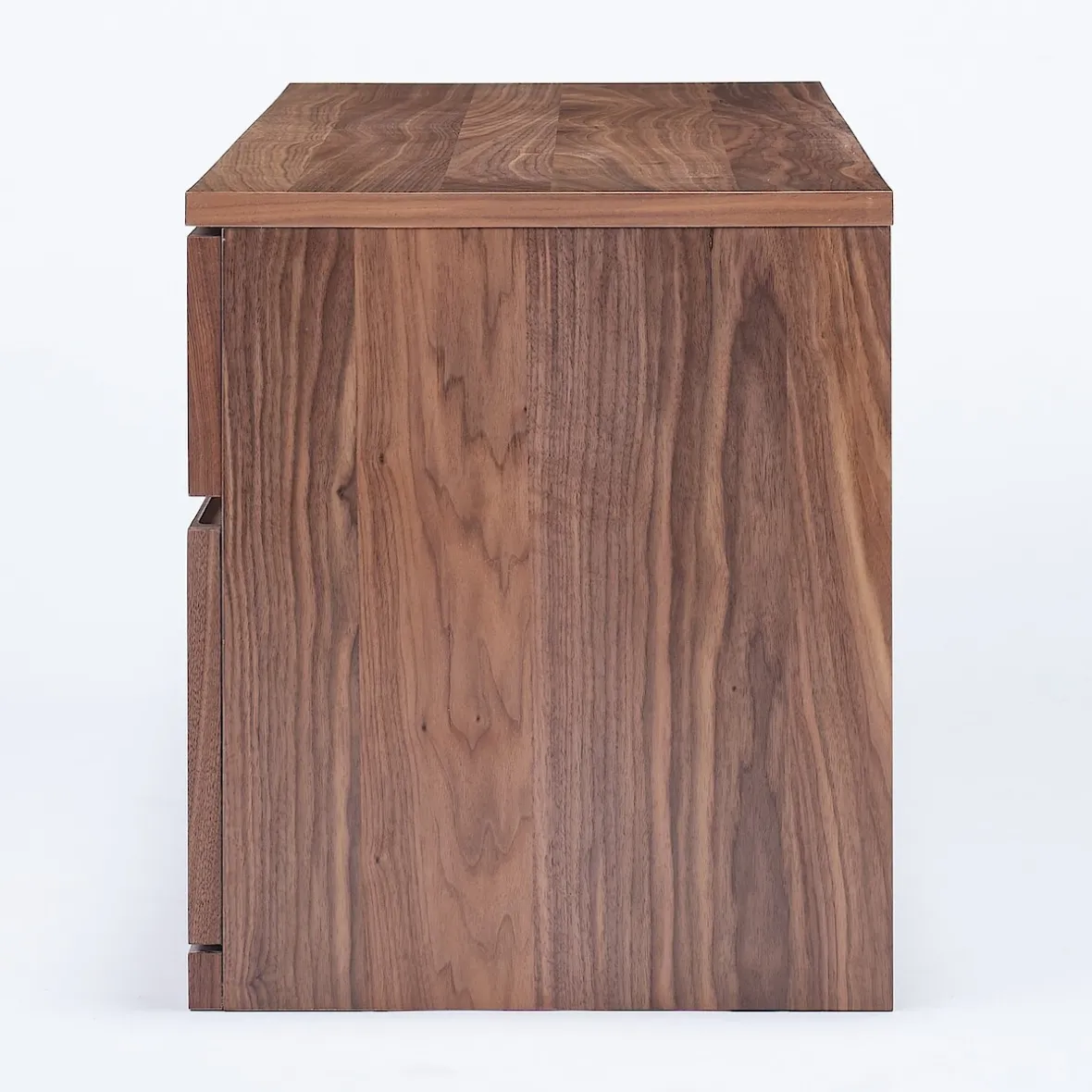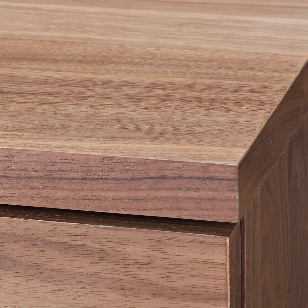 Panneaux latéraux et façades de tiroirs : panneau de fibres plaqué bois naturel (placage noyer à surface lisse),