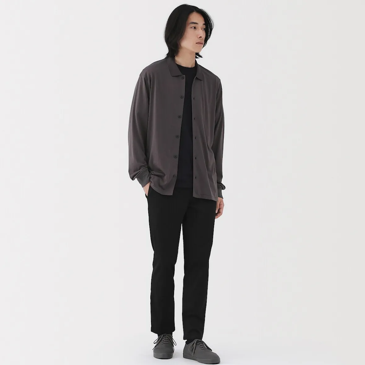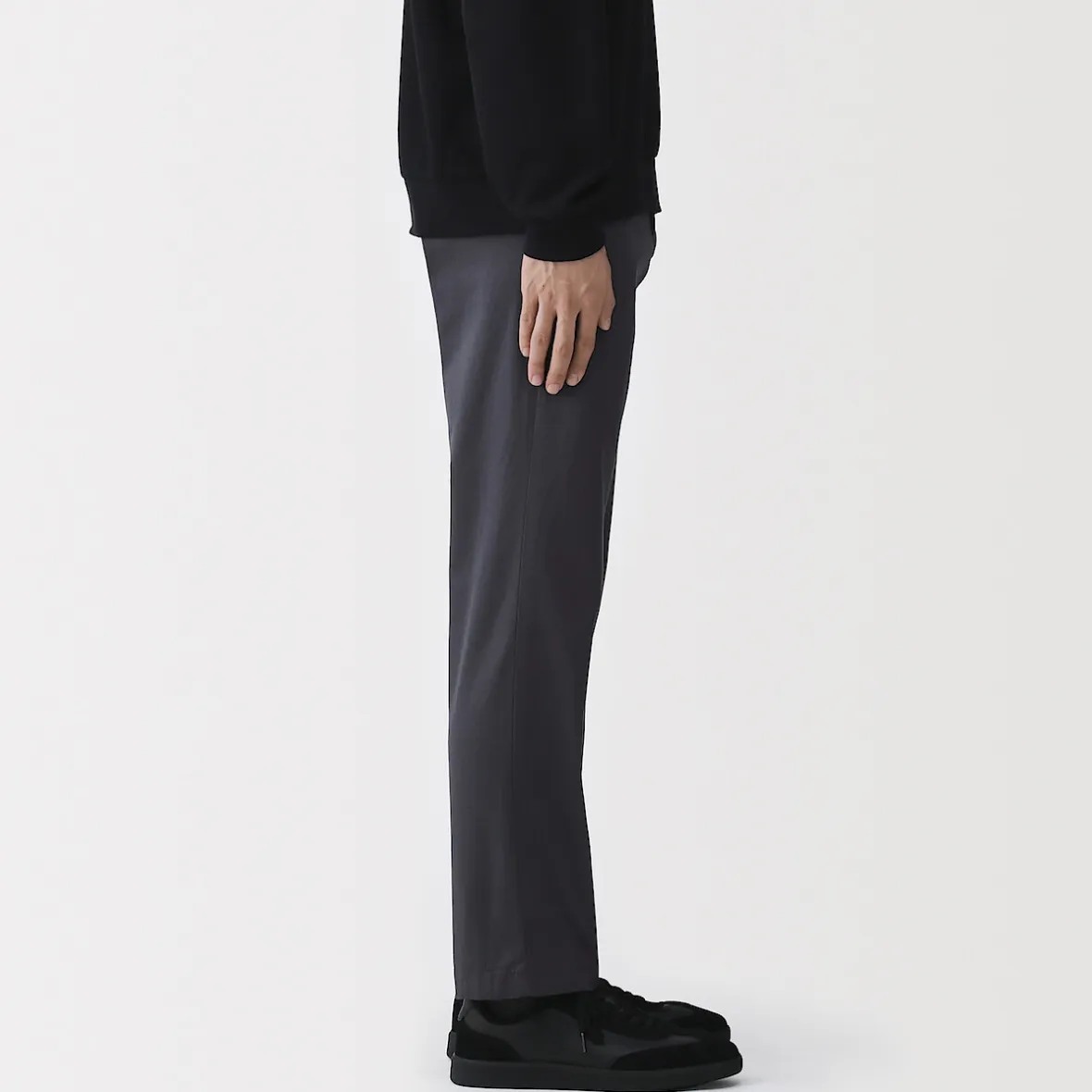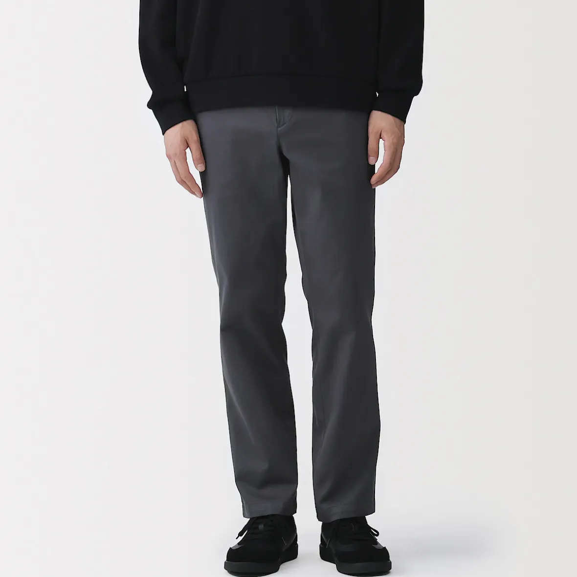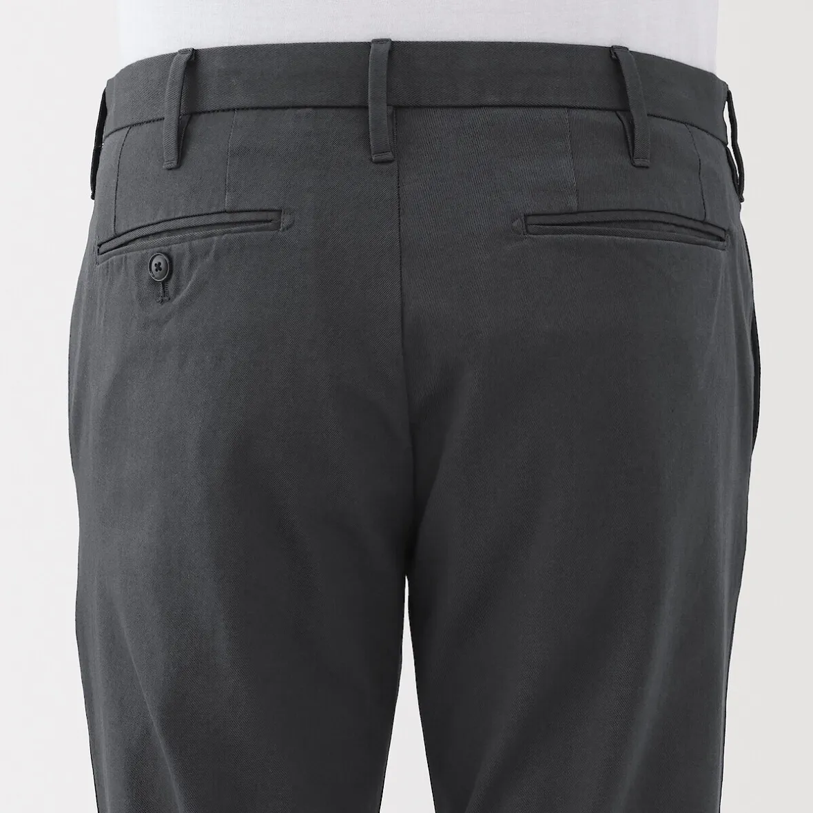 Les chinos sont un best‐seller de MUJI. Ce modèle classique, tant par sa coupe que par sa couleur, est fabriqué dans une matière extensible confortable pour une plus grande liberté de mouvement.