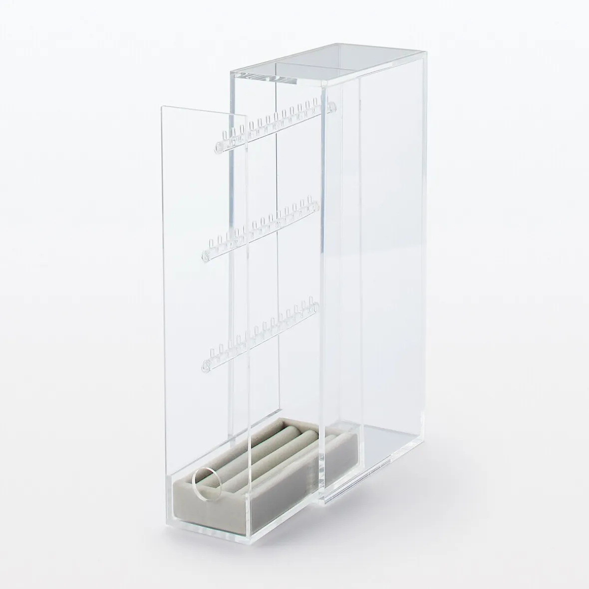 Plateau en velours gris pour ranger les boucles d’oreilles ou les bagues. 5 X 12 X 2cm.S’adapte dans la boîte acrylique pour boucles d’oreilles et colliers ref 8958207.