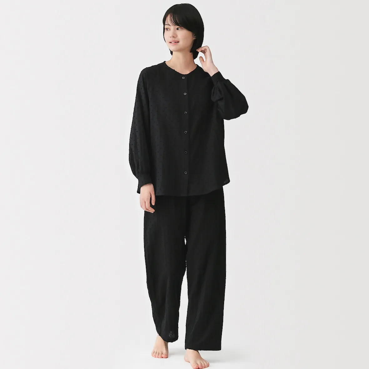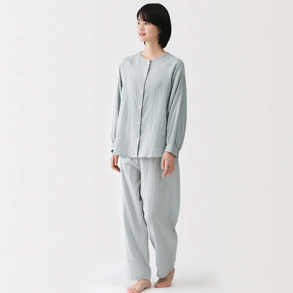 – Douce double gaze avec motif dobby texturé